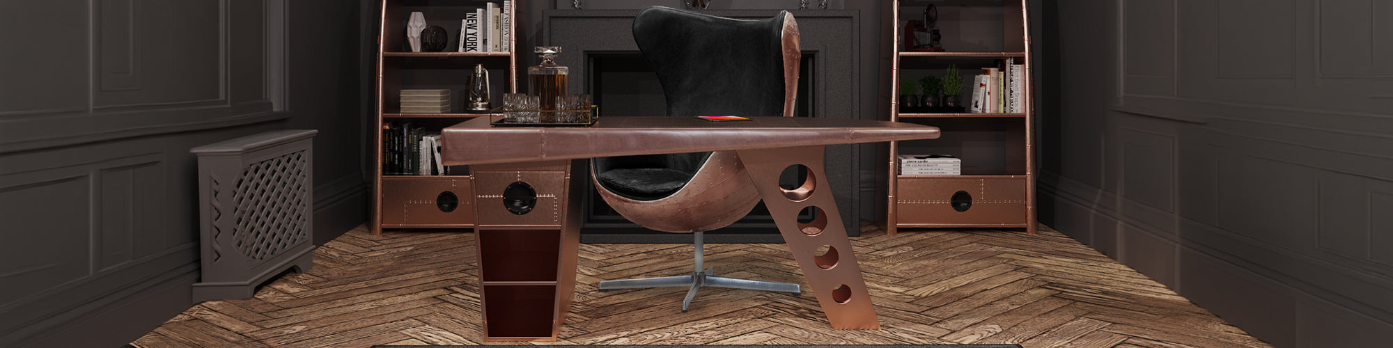 Aviator takes cues from aircraft engineering, with riveted metal detailing, strong lines and a vintage brass finish that gives the look its signature edge. It’s an industrial style that still feels considered, working best in spaces that balance darker accents with warmer materials and texture.