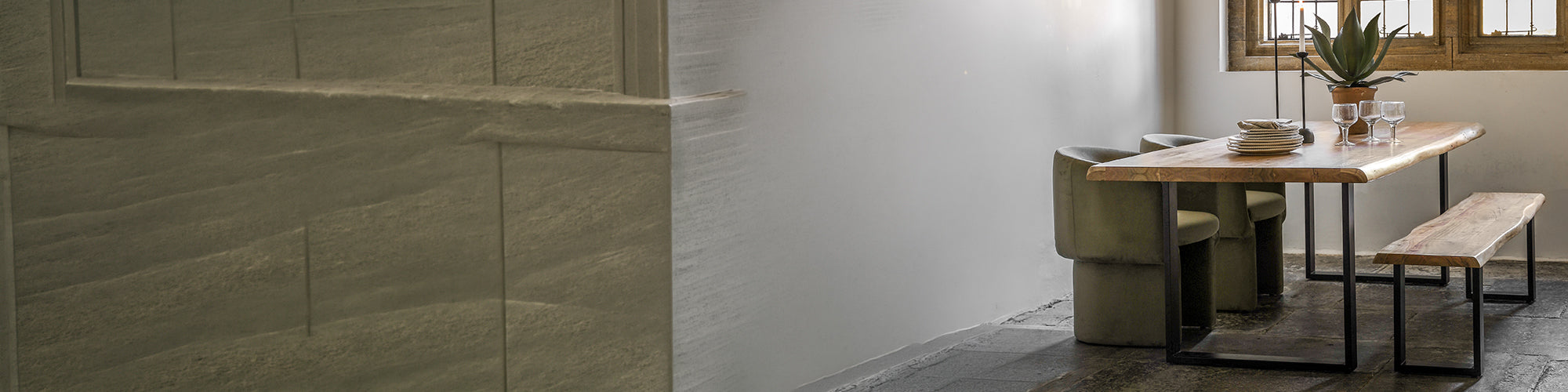 With coordinating dining tables and a matching bench, it’s easy to create a set-up that feels pulled together while staying practical for real life.