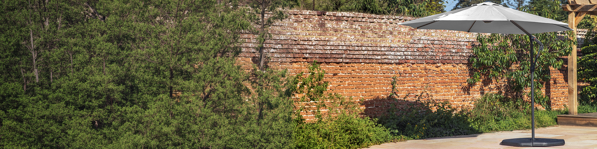 Pair the parasol with the coordinating base for a stable, well-finished set-up. It keeps outdoor dining and lounging comfortable in sunny weather, while letting your furniture and planting do the talking.
