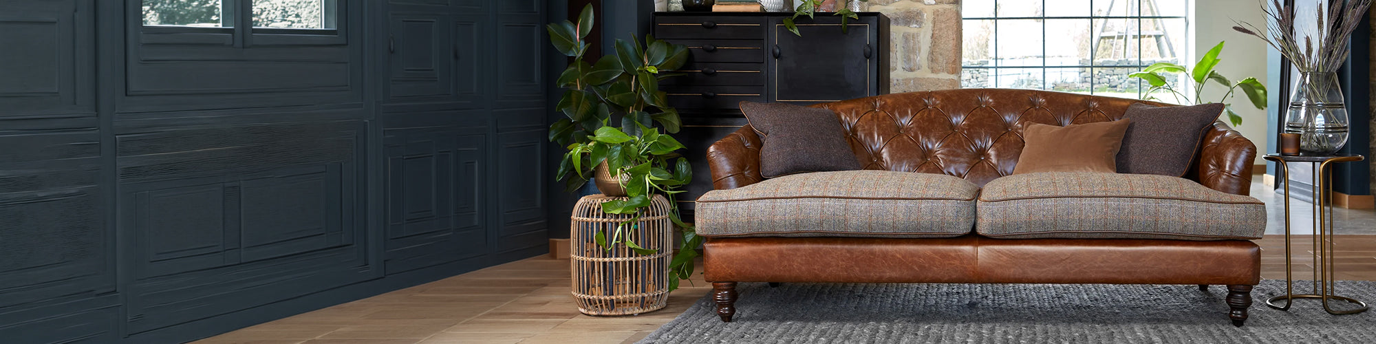 Tetrad Dalmore takes its cue from the elegance of the Edwardian era, with a softly shaped back and classic deep buttoned detailing that give the sofa its more formal character. Upholstered in Harris Tweed, it brings texture and warmth into the room while keeping the overall look composed and refined.