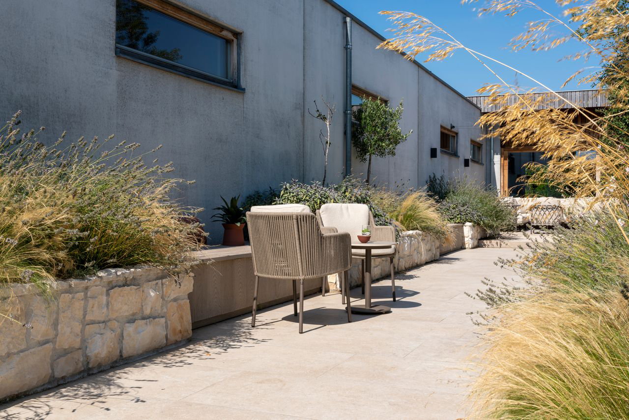 The Bernini collection from 4 Seasons Outdoor is defined by its soft, rounded forms and carefully selected materials. The chairs feature a subtle Terre finish that blends seamlessly with a variety of table styles and outdoor environments, making them versatile and timeless.