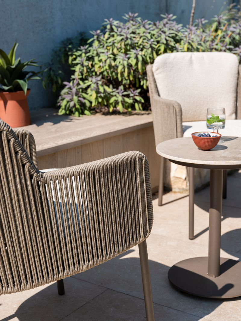 Durability is built into every piece. The frames, crafted from powder-coated metal, are resistant to corrosion and weather, while the rope and fabrics are engineered to withstand UV exposure, moisture, and temperature changes. The cushions are quick-drying and fade-resistant, ensuring they remain attractive and practical across the seasons.