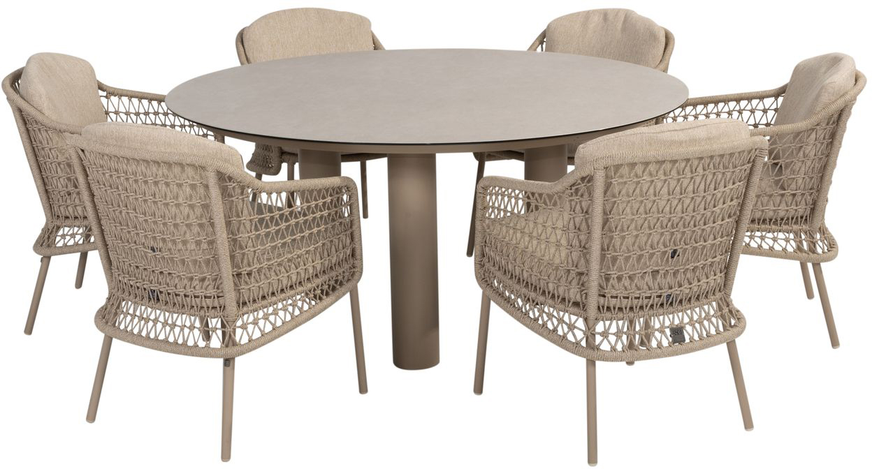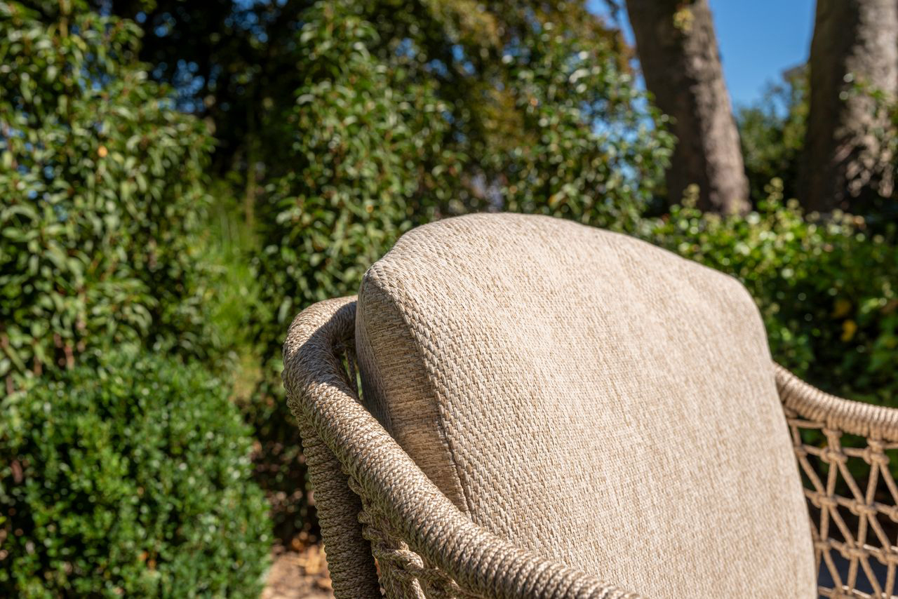The Puccini collection brings together texture, warmth, and refined lines to create a visually striking yet comfortable outdoor range. The tone that defines it is Latte, used consistently across the frame, rope detailing, and cushions giving the collection a soft, cohesive identity.
