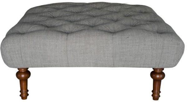 A unique hand buttoned stool that is the perfect addition to any Alexander & James sofa or chair. The Fontaine Button Stool is a French style inspired stool with a classic button top design and traditionally styled hand carved wooden feet. Choose from a wide range of stunning natural leathers and luxurious fabrics to make this beautiful stool your own. Image shown in Artisan Plain Stone.