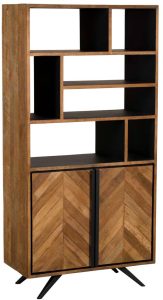 •2 Large cupboards •Natural finish oak •Chevron inlaid design •Contemporary, industrial inspired design