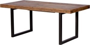 The Baker Nixon 180cm-240cm Extending Dining Table features natural reclaimed timber and powder coated anthracite aluminium legs with plastic feet protectors to avoid damaging flooring. The table extends from 180cm-240cm using the extension leaf that tucks away neatly when not in use and the table has security locks for both the closed and extended positions. Seats 8 people comfortably.