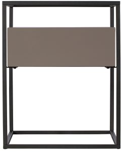 The Baker Panama Lamp Table- Painted features a tempered glass top and the powder coated aluminium frame houses a floating mid section with an integrated soft close drawer and a shelf on top.