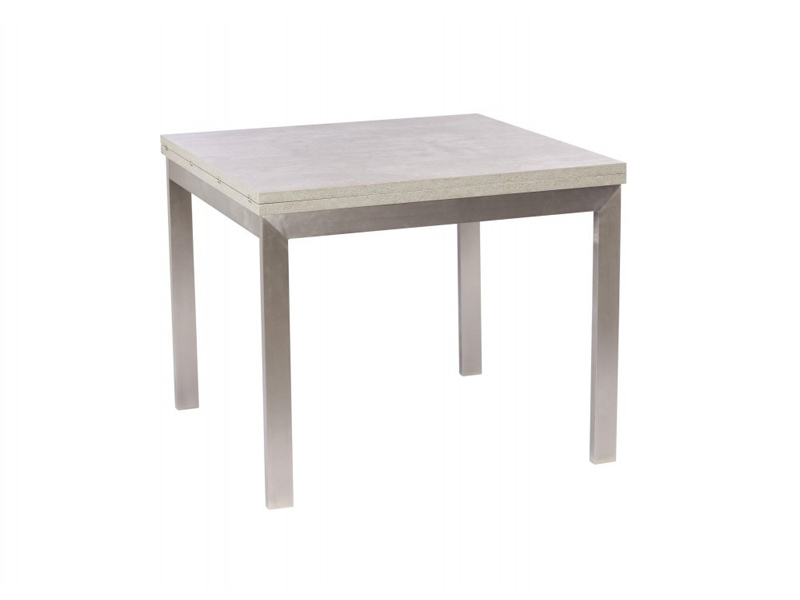 The Baker Petra 90-180cm Flip-Top Dining Table features a concrete effect top and brushed stainless steel framework with pads to prevent scratching your floors. The top flips out and slides over the centre of the legs to double the usbale dining space from 90cm to 180cm and has security locks to lock the table in both positions.