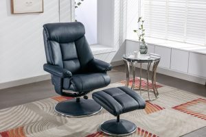 Global Furniture Alliance Biarritz Chair in Navy Unwind, lean back, swivel, and elevate your feet in chic, modern fashion.