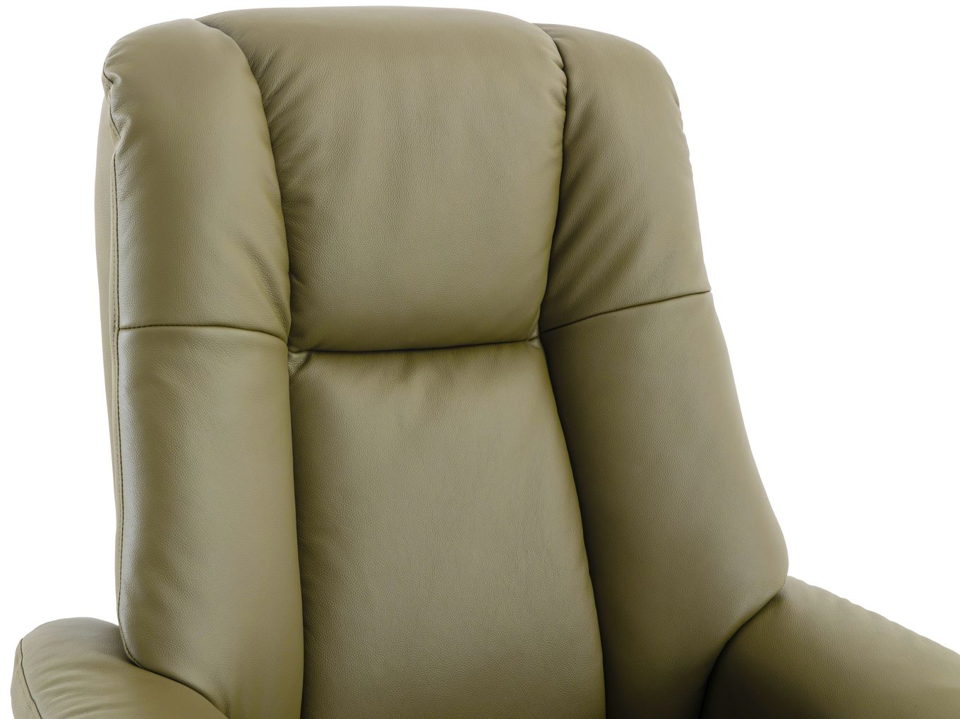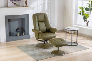 Global Furniture Alliance Denver Chair in Olive Green With its clean lines and contemporary style, the Denver swivel recliner offers sumptuous comfort at a great price! It’s easy twist handle operates the manual recliner and the 360 degree swivel gives the user complete control. With it’s versatile offering of soft touch leather/match and fabric, the Denver will be the perfect addition to any home.
