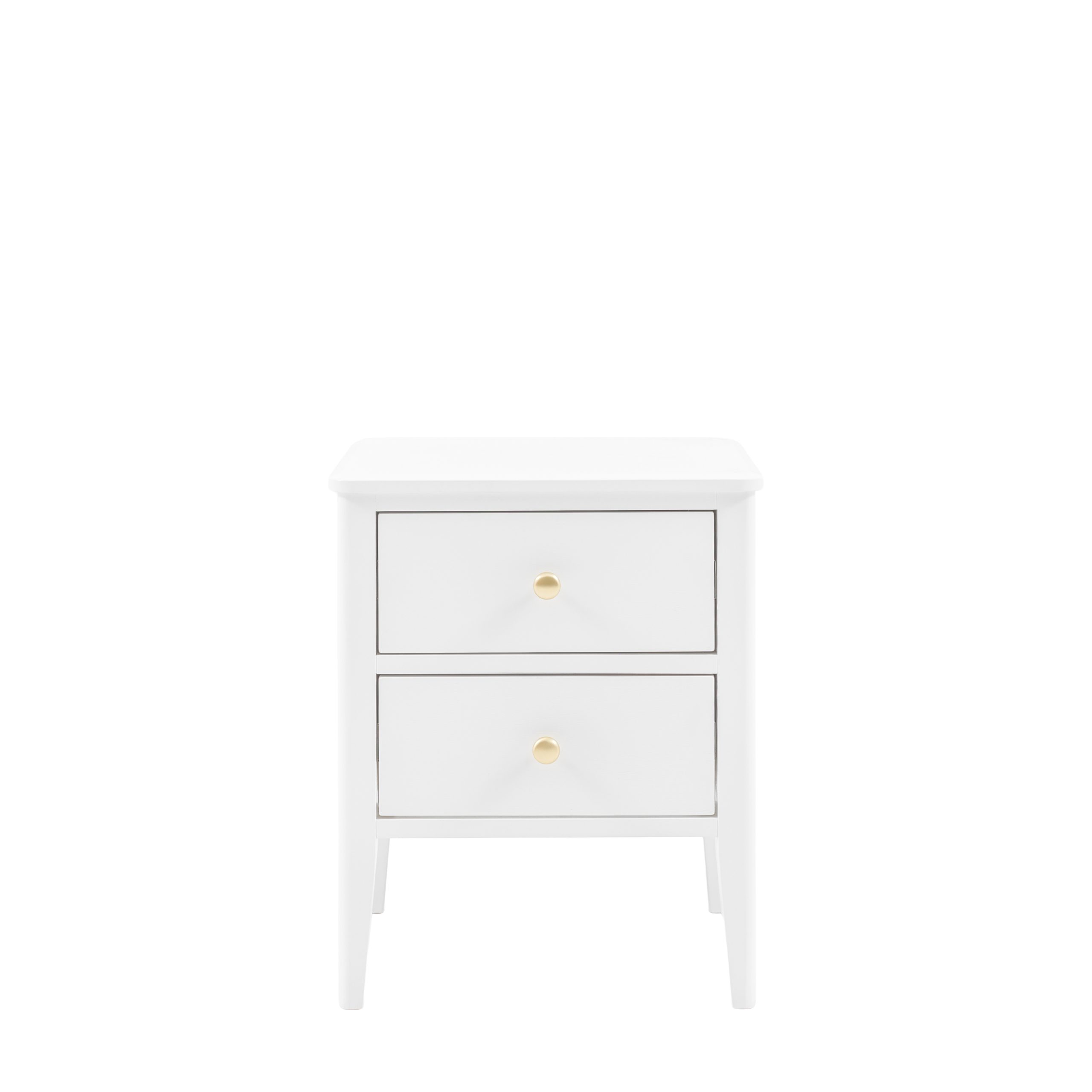 Gallery Direct Acton 2 Drawer Bedside White Elevate any bedroom with this sophisticated bedside table. Its fresh white finish is perfectly complemented by elegant gold handles, bringing a touch of modern luxury to any space. Two spacious drawers offer convenient storage, keeping essentials close at hand. A perfect blend of style and functionality.
