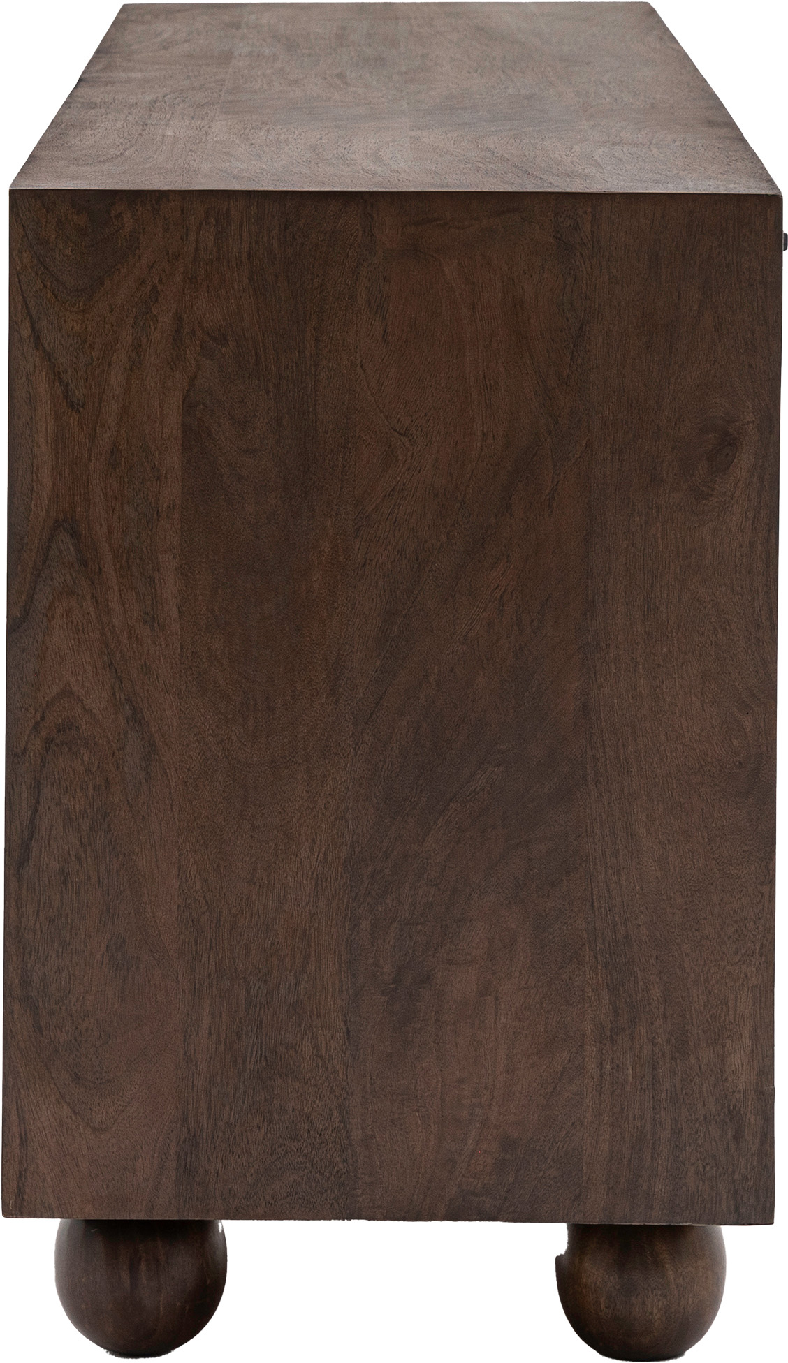 With a 70s influence, this sideboard exudes retro cool. The dark stained Mango wood is full of rich grains which is highlighted by the relief arch design in each of the 4 doors. Finished off with rounded ball feet and internal shelves offering plenty of storage this unit is a must have for any trendy home. A 2 door option is also available, as well as further coordinating pieces.