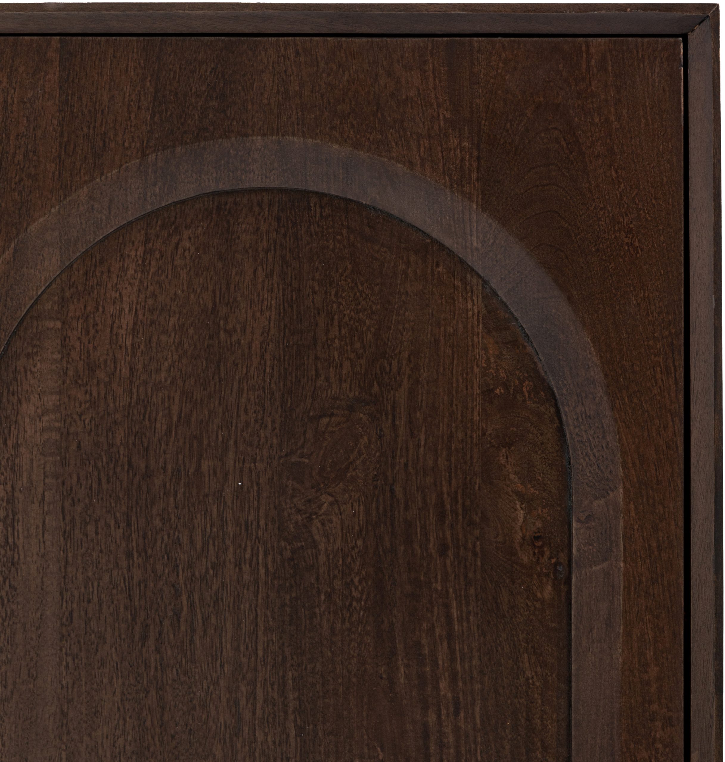 Gallery Direct Arc 4 Door Sideboard With a 70s influence, this sideboard exudes retro cool. The dark stained Mango wood is full of rich grains which is highlighted by the relief arch design in each of the 4 doors. Finished off with rounded ball feet and internal shelves offering plenty of storage this unit is a must have for any trendy home. A 2 door option is also available, as well as further coordinating pieces.