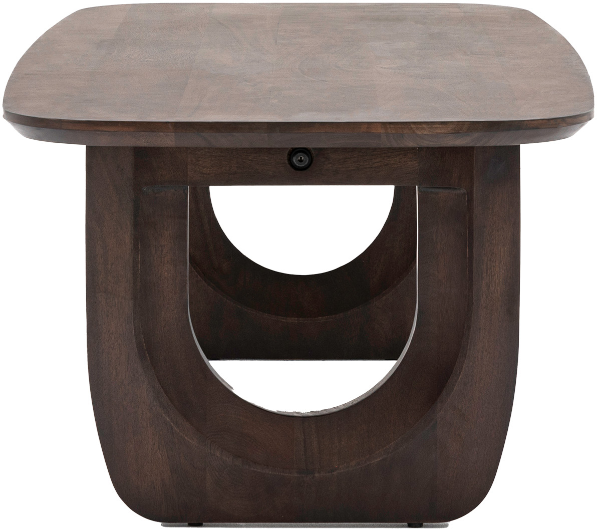 Gallery Direct Arc Coffee Table Add a bit of retro style to your living room with this bold on trend 70s influenced coffee table. Made with Mango wood stained to a deep dark colour to show off the rich grains its the carved U shaped legs on this table that really grab your attention. Coordinating further pieces also available.