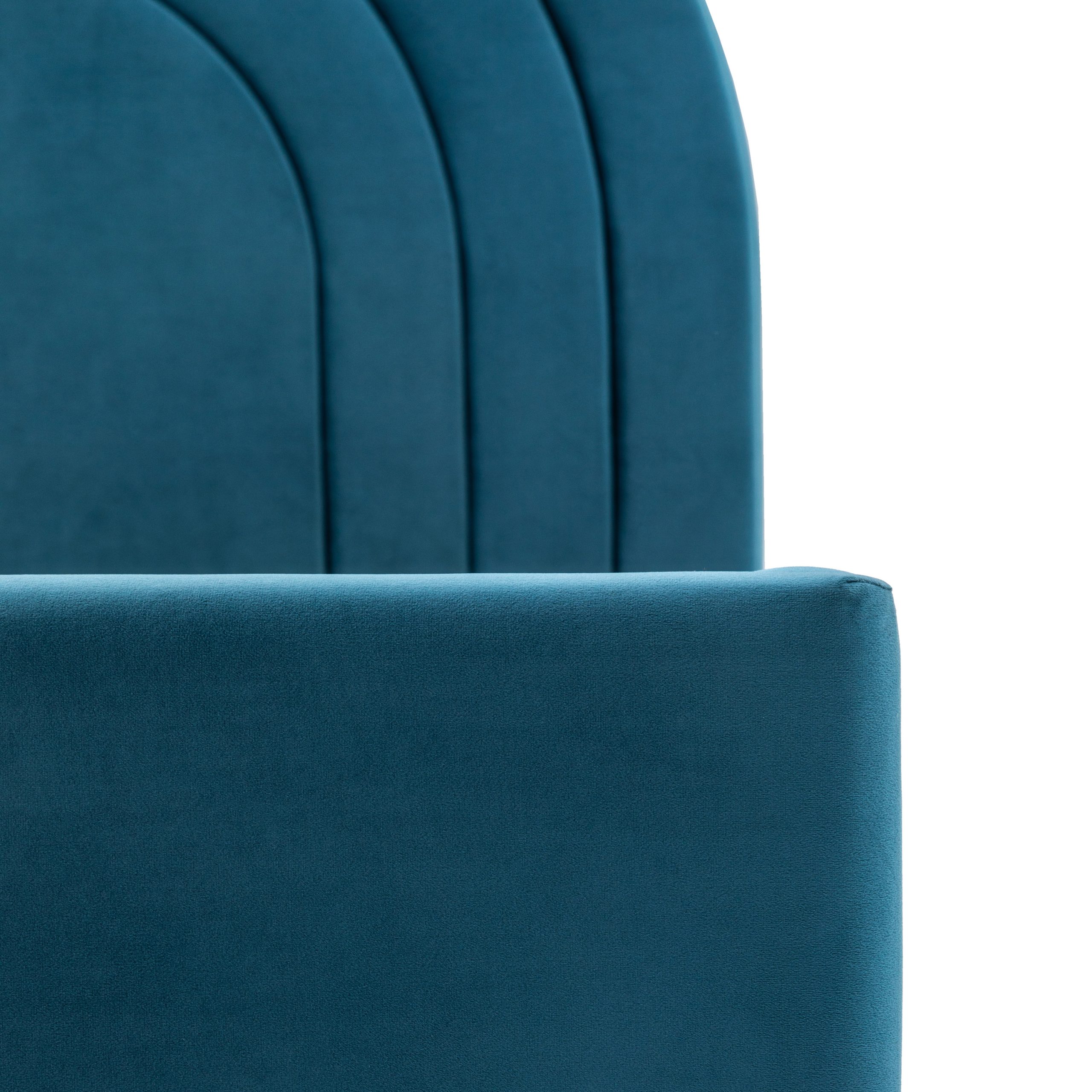 Gallery Direct Arch 5′ Bedstead Kingfisher Add some retro vibes to your beDooroom with this vintage inspired bedstead. Upholstered in bold blue velvet this king size bedstead’s stand out feature is a fabulous arch headboard, with curved stitch detail the headboard is full of retro cool, making it the stand out feature in any beDooroom.