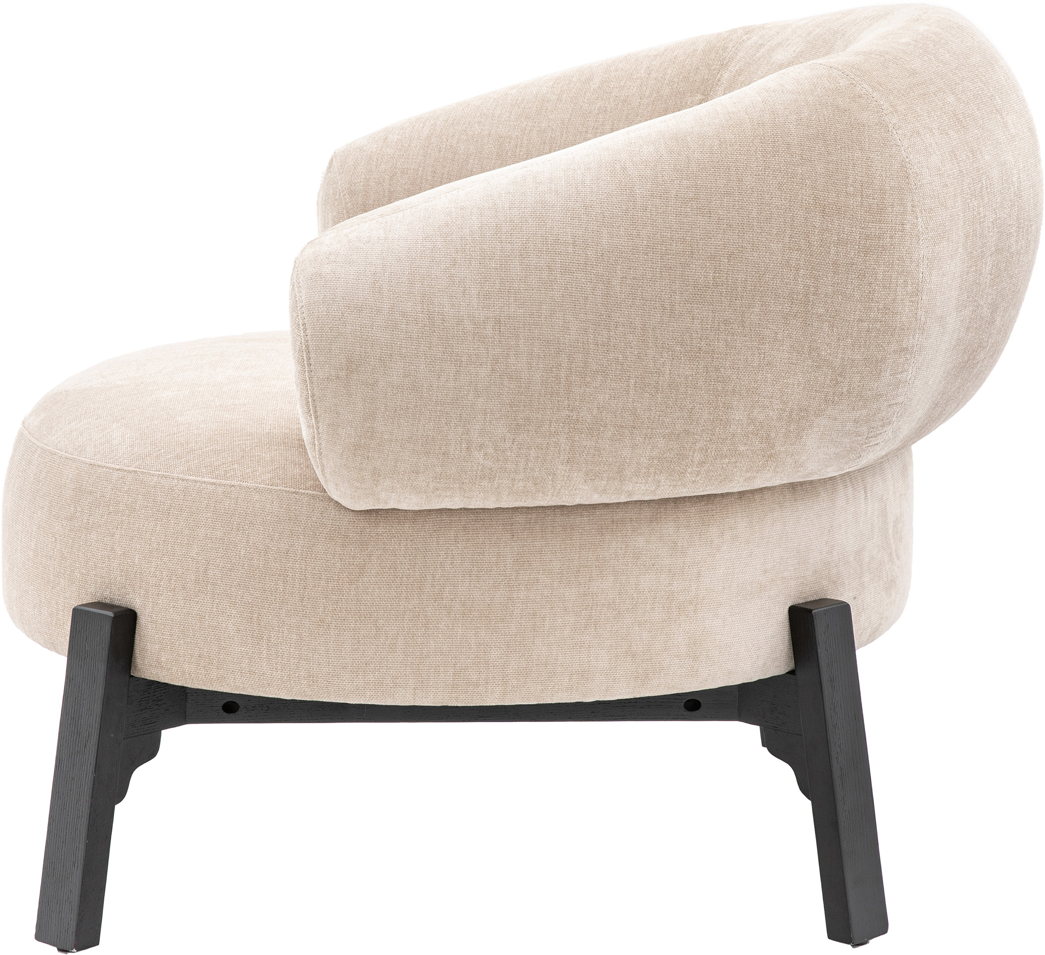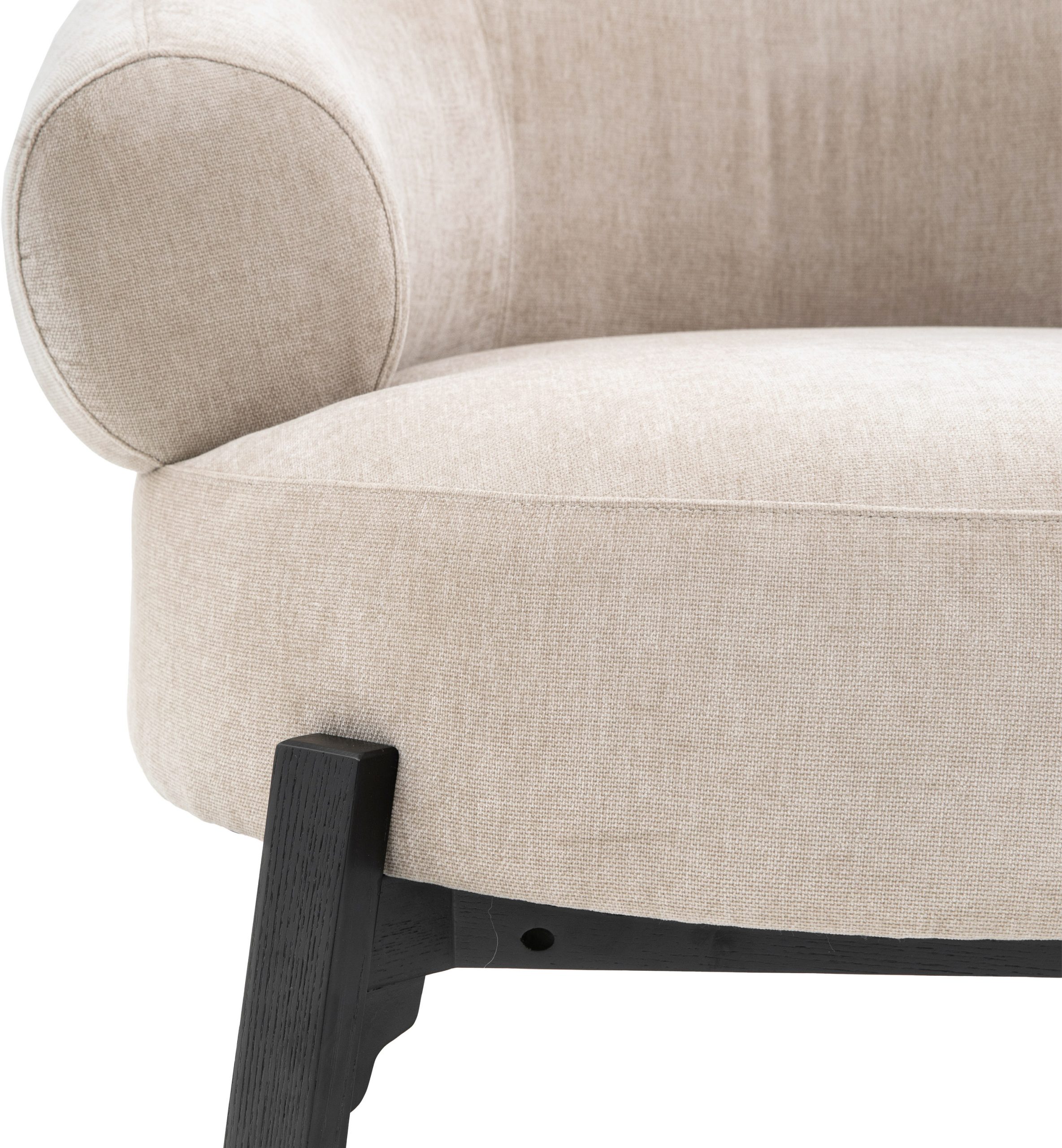 Gallery Direct Ardo Armchair Cream Perfect for getting cosy this well cushioned and extra comfy armchair will become the stand out feature of any space The curved wrap around back and round seat is supported by a bold dark wood base frame and legs, making it an eye catching addition to any room.