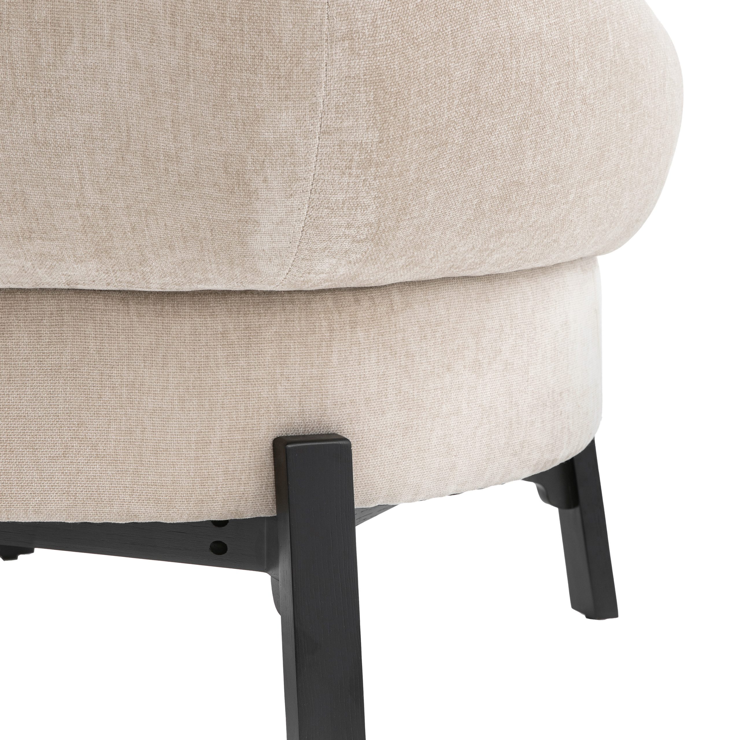 Perfect for getting cosy this well cushioned and extra comfy armchair will become the stand out feature of any space The curved wrap around back and round seat is supported by a bold dark wood base frame and legs, making it an eye catching addition to any room.
