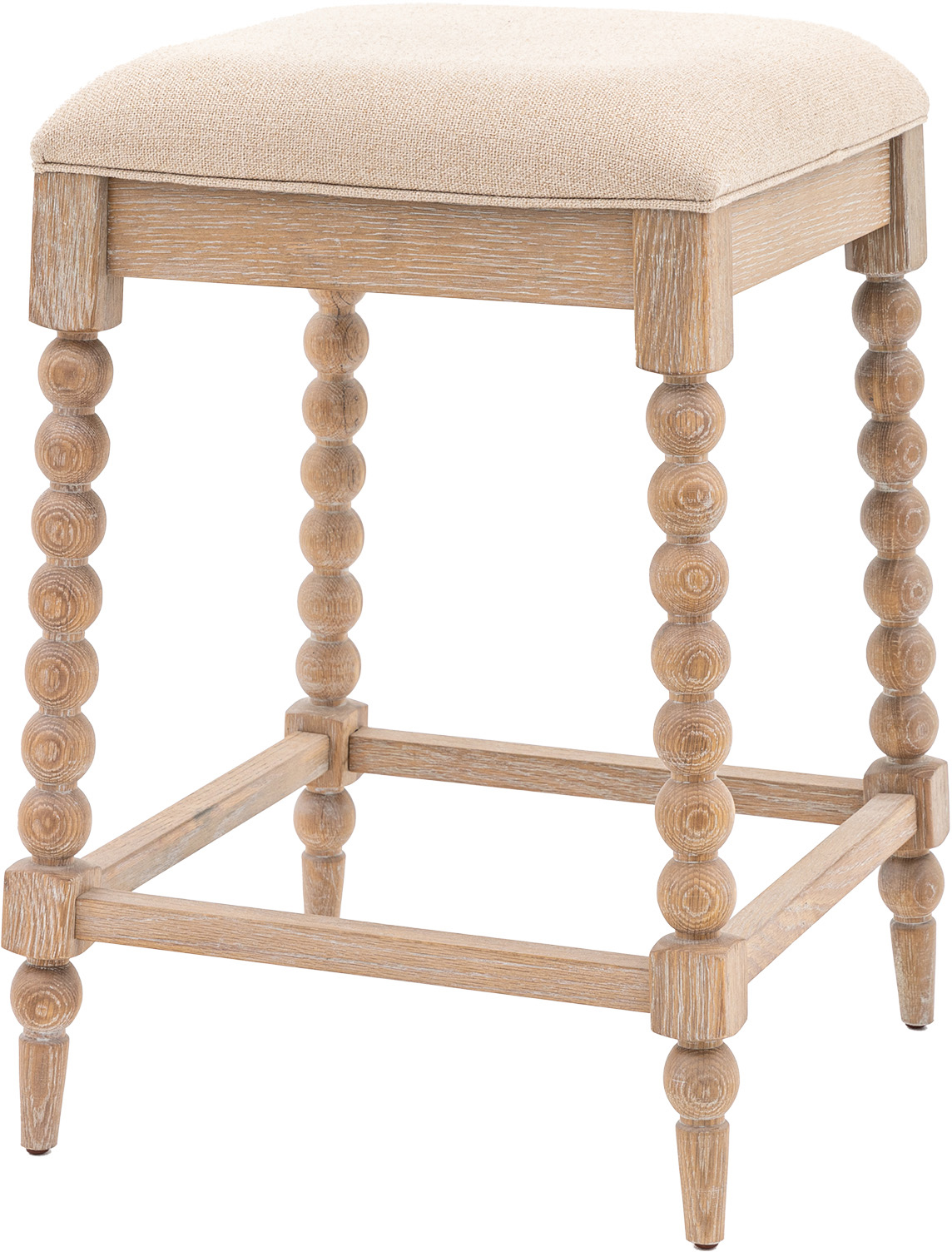 Gallery Direct Artisan Bar Stool The eye-catching legs on this beautiful bar stool feature hand-crafted bobbing detail which is created by turning the wood on a lathe, a task carried out by the finest craftsmen. The stool is made from oak with a very subtle lime wash tone to the finish which is soft and mellow, paired with biscuit coloured fabric for the upholstered seat. Matching pieces are available.