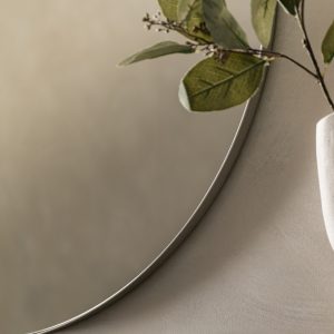 Featuring a slim elegant silver metal frame, this round mirror is the perfect way to update your home. The contemporary shape and industrial inspired frame create a stunning statement piece.
