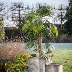 Gallery Direct Chinese Fan Palm Brighten up a dark corner with this stunning, handmade palm, in a rich green with intricate detailing. Set in a plastic pot, ready for you to style or drop in a pot of your choice. Can be paired perfectly with one of our beautiful pots.