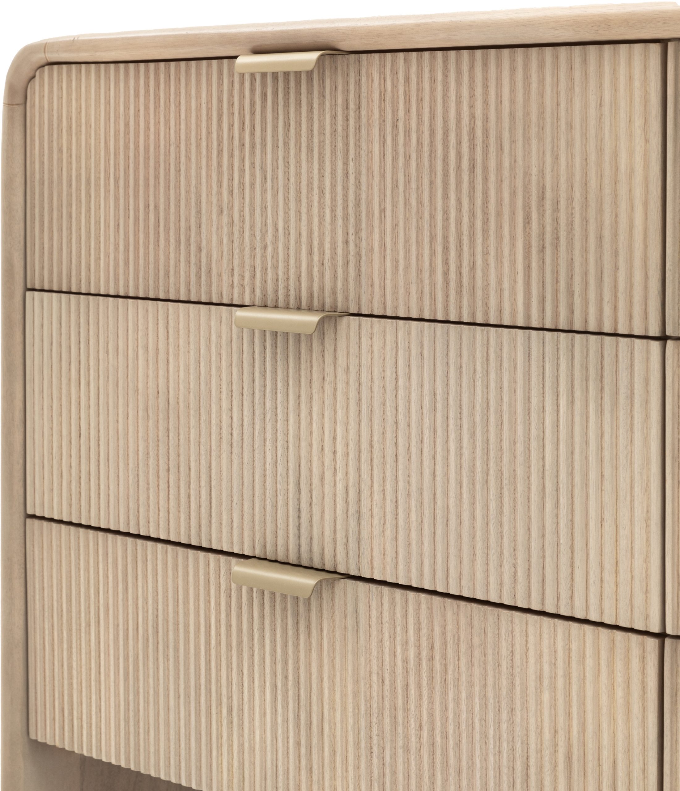 Gallery Direct Colonna 6 Drawer Chest The Gallery Direct Colonna 6 Drawer Chest offers a spacious and stylish storage solution. Designed with a curved top and fluted drawer fronts, this chest features six drawers, making it ideal for organising clothing, linens, or other items. Its sophisticated design and ample storage capacity make it a practical addition to any bedroom or living area, complementing various interior styles.