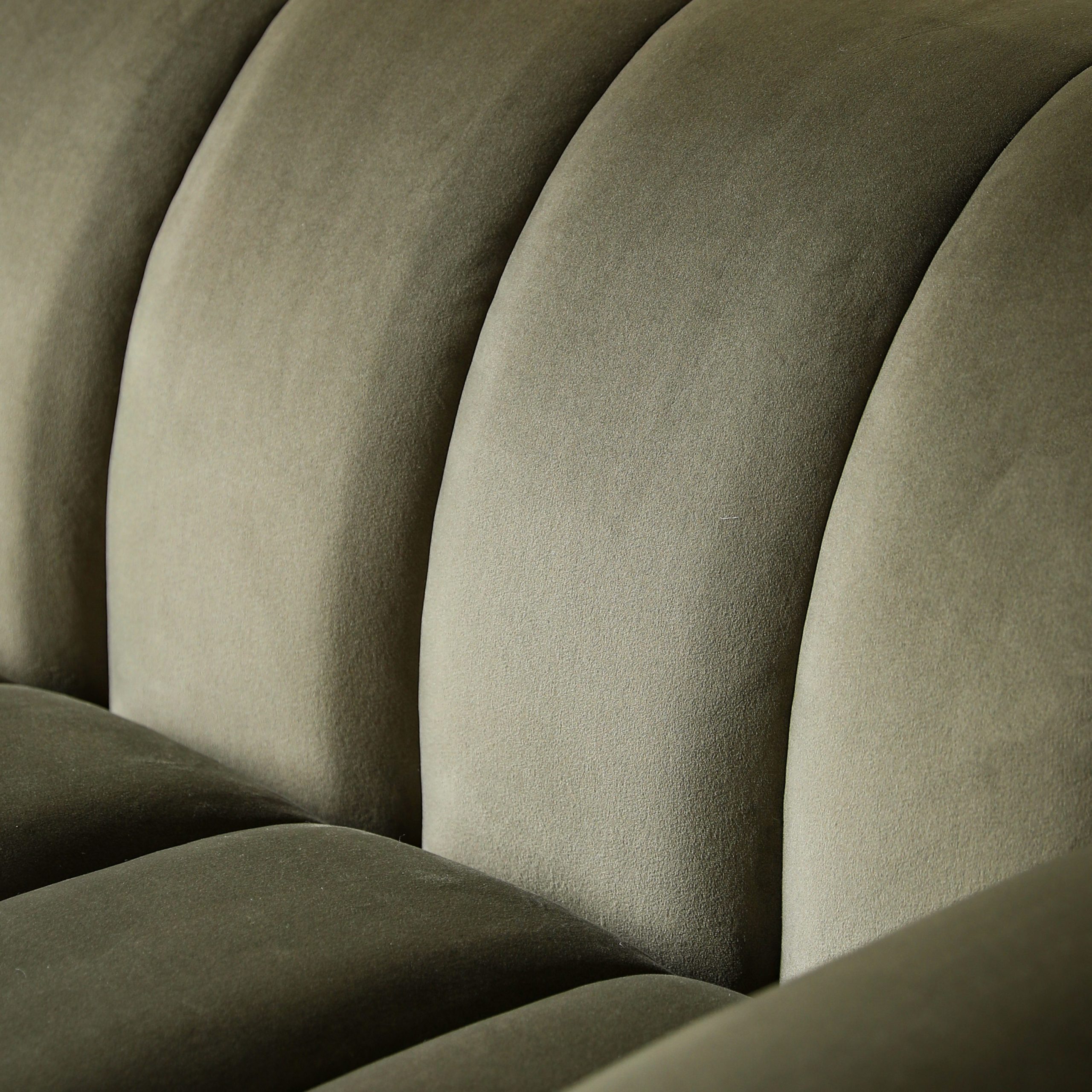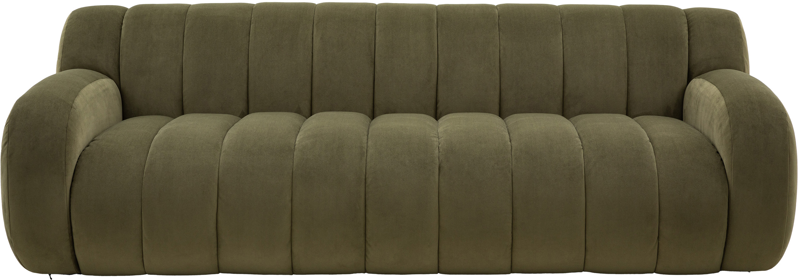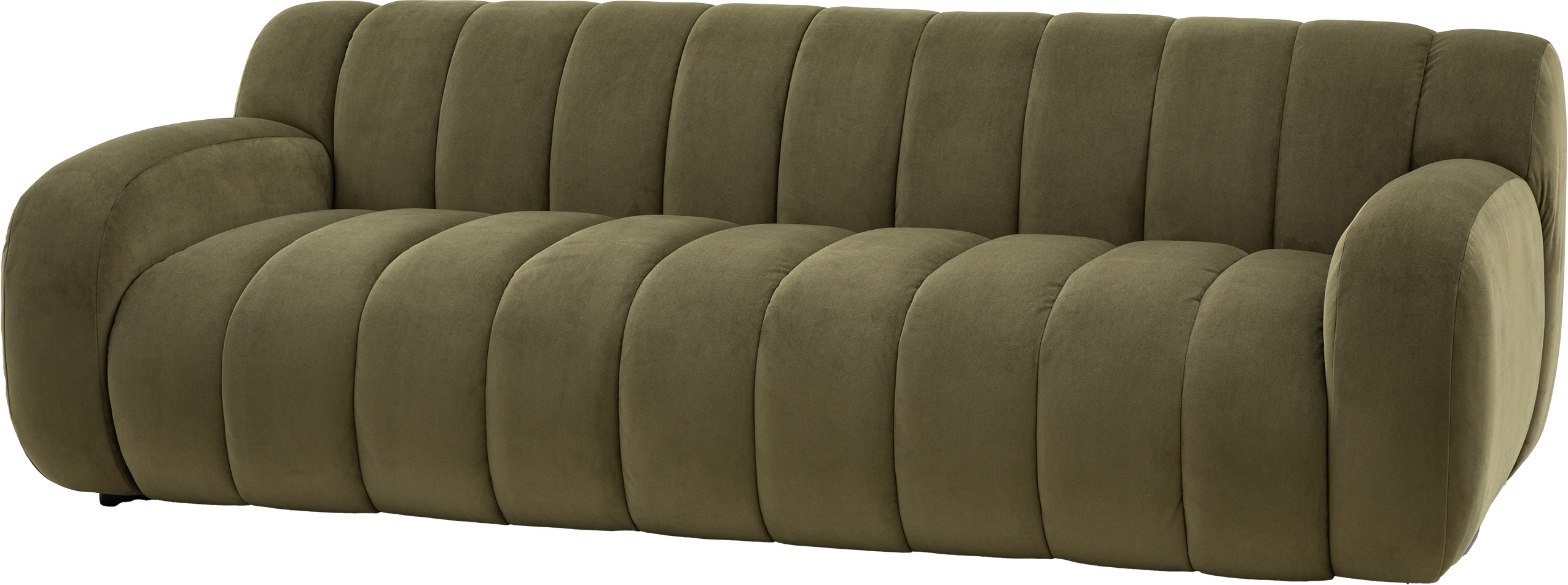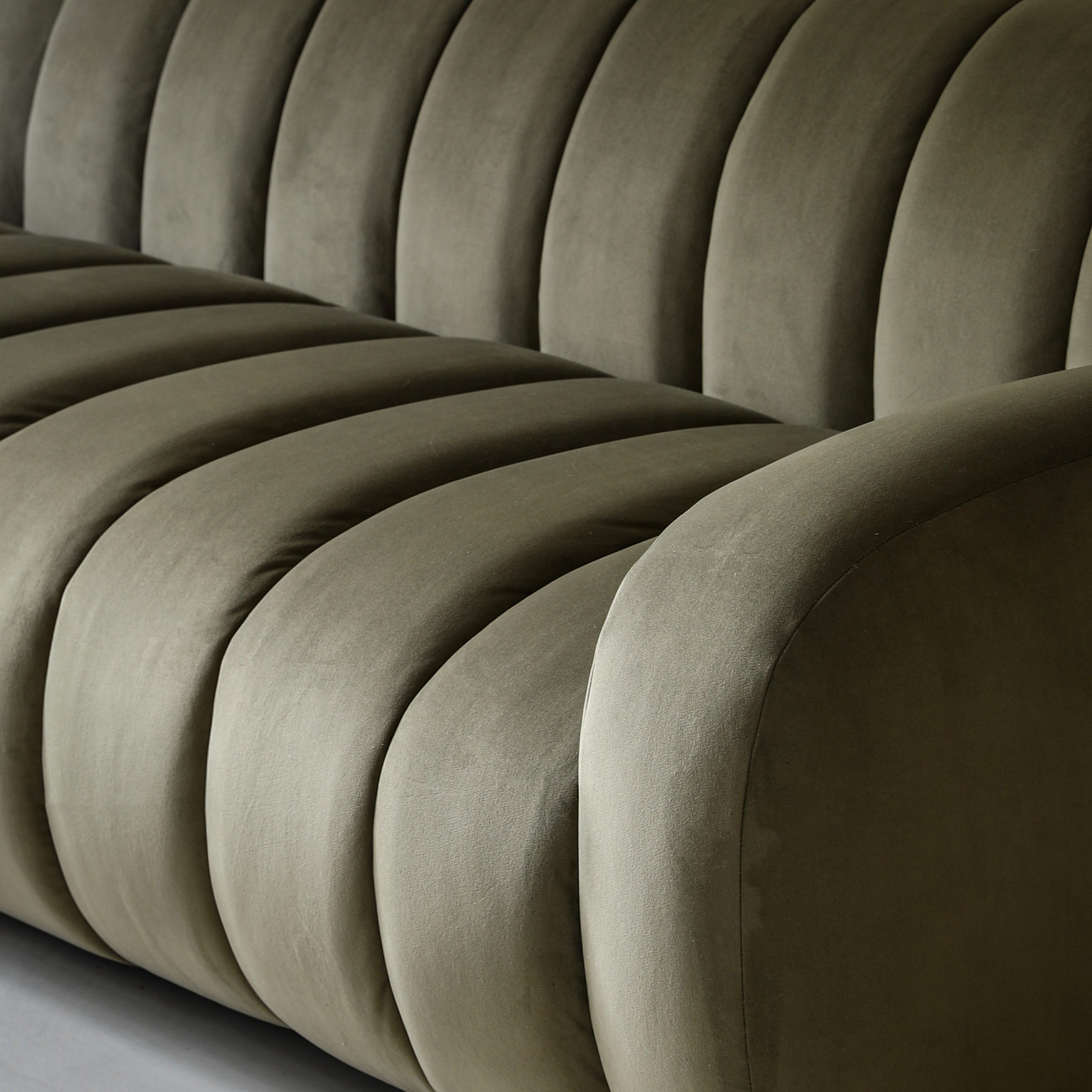 Make a bold statement with this retro inspired moss green sofa. The eye catching and unusual upholstered ridge design of this 3 seater sofa certainly won’t go unnoticed, making it the feature of any living space and the perfect stand out design statement.