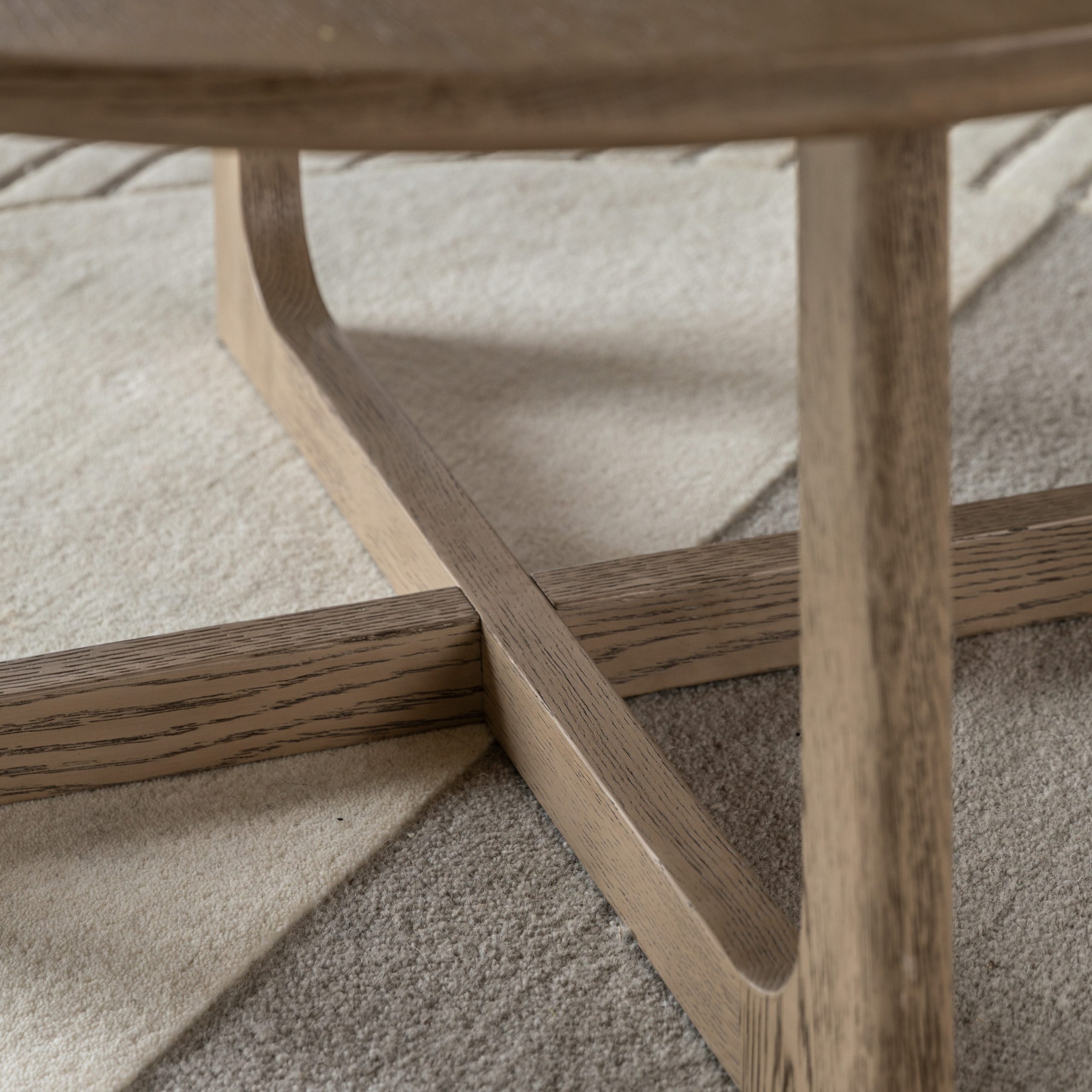 Crafted from the finest oak and structural oak veneers where practical, this beautiful coffee table offers elegant design, with its simple round top and beautifully shaped underframe. The wood has a smoked oak finish. The table is also available in a natural finish, and matching pieces are available.