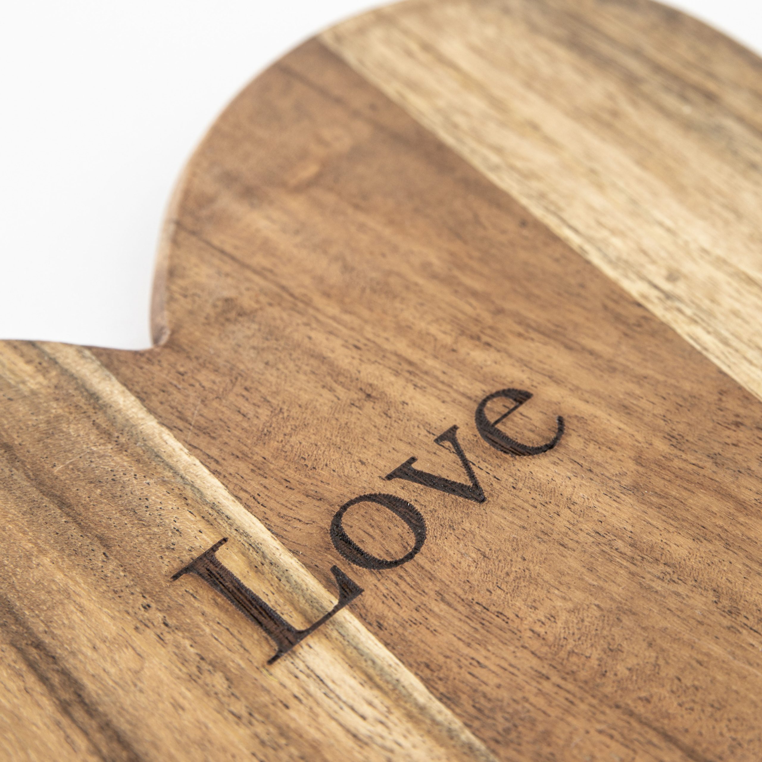 Handmade from mango wood, this lovely chopping board features an exclusive emotive text design.