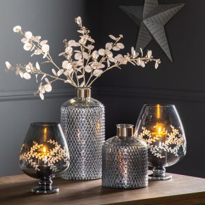 Gallery Direct Erica Vase Etched Grey Lustre Add some texture to a room with this stunningly detailed vase in a smokey grey colour, perfect to display any of our faux floral displays. Also available in a larger size and the pair look lovely when displayed together.