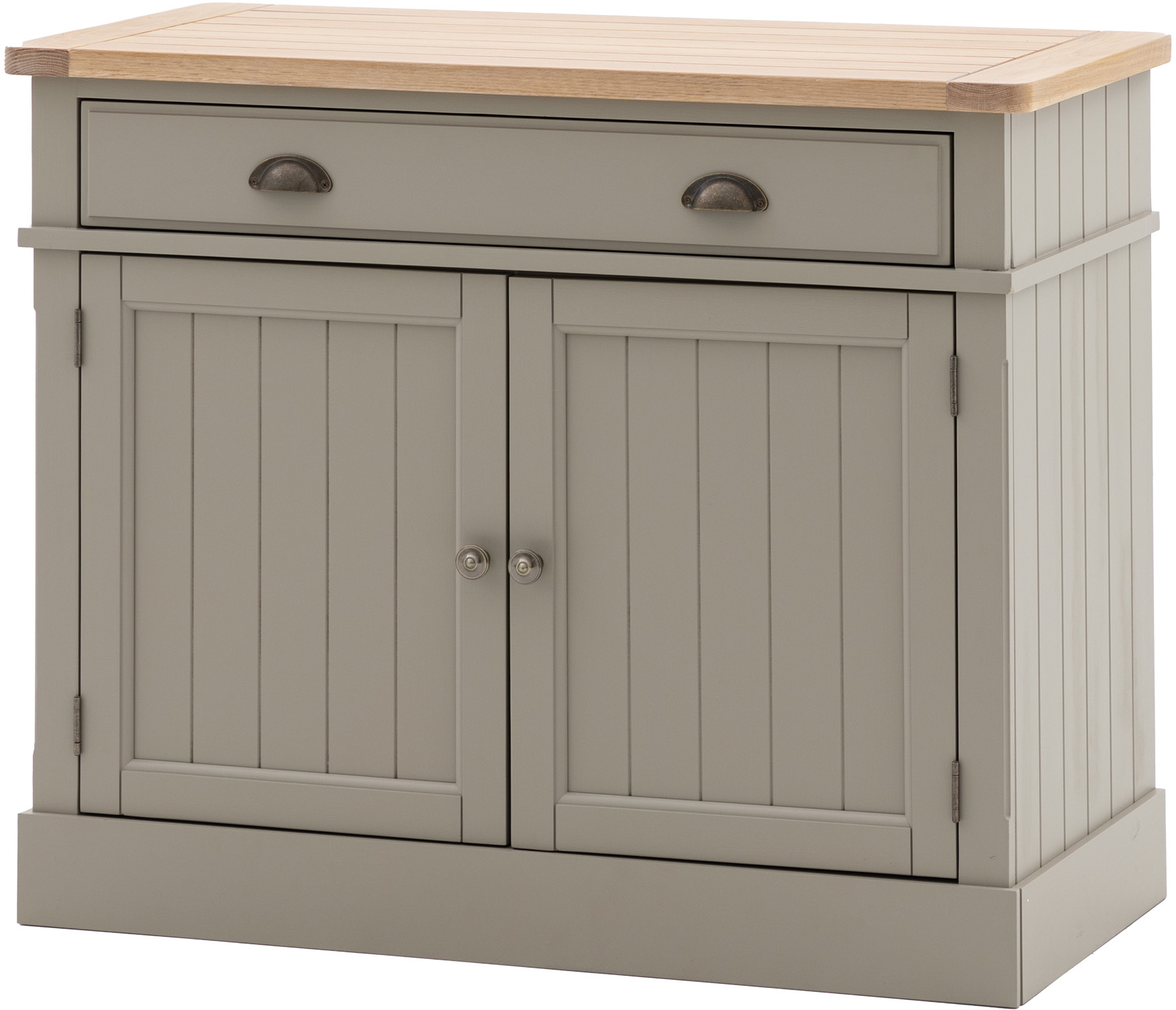 The Gallery Direct Eton 2 Door Sideboard Prairie combines traditional charm with contemporary style. Offering practical storage with a single large draw and 2 door cupboard with adjustable shelves, there’s plenty of storage space. The combination of the grooved & planked oak vaneered MDF top with hand painted textured finish base, grooved doors and traditional style metal handles gives the sideboard a modern twist on a country classic style. Due to the handmade nature of this product colour variations may be present.