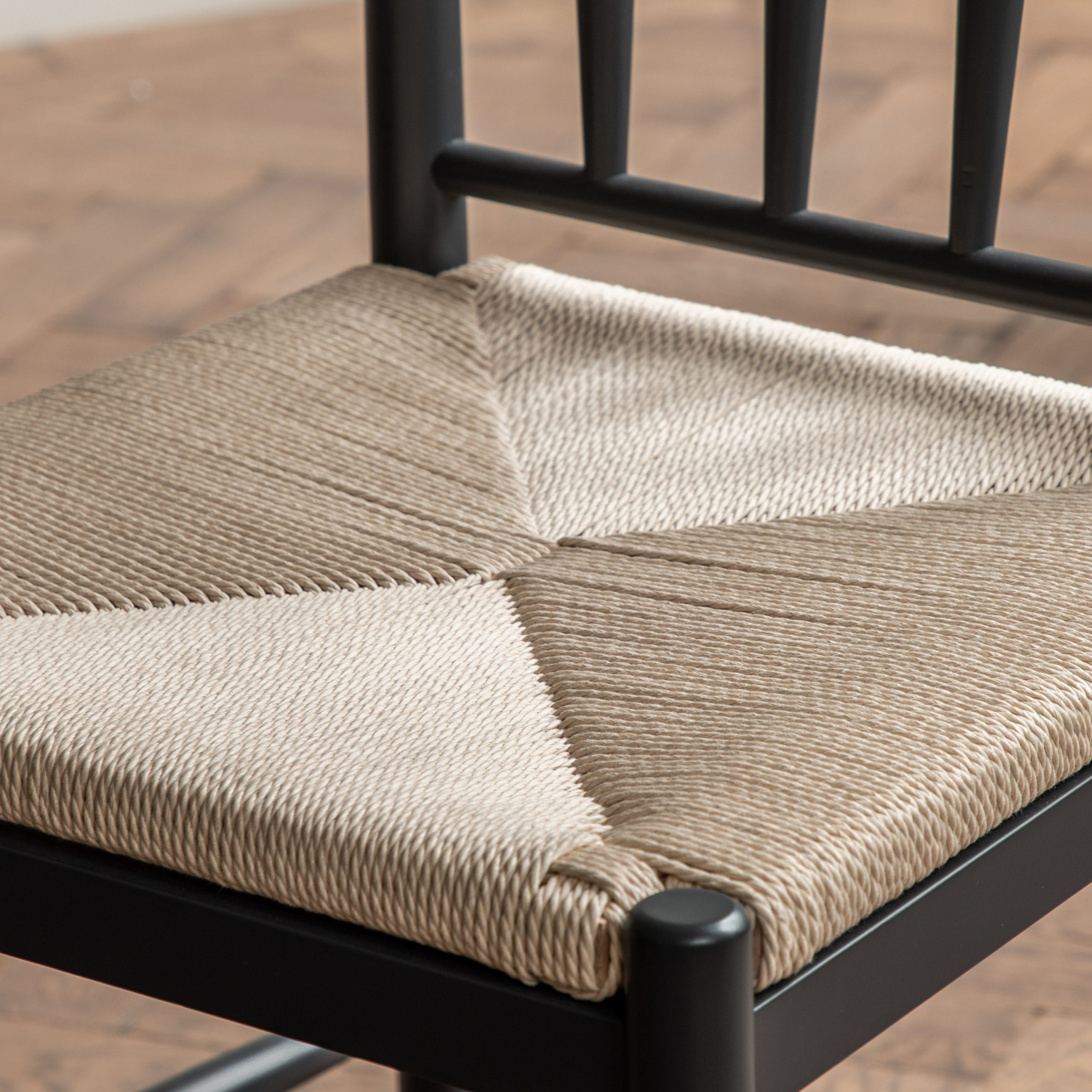 The Gallery Direct Eton Dining Chair Meteor (Set of 2) is perfect for creating a cosy dining area. With modern lines and traditional features, these dining chairs offer a modern twist on a classic farmhouse chair. The hand painted timber frame is paired with a traditional style hand woven rope seat. Due to the handmade nature of this product colour variations may be present.