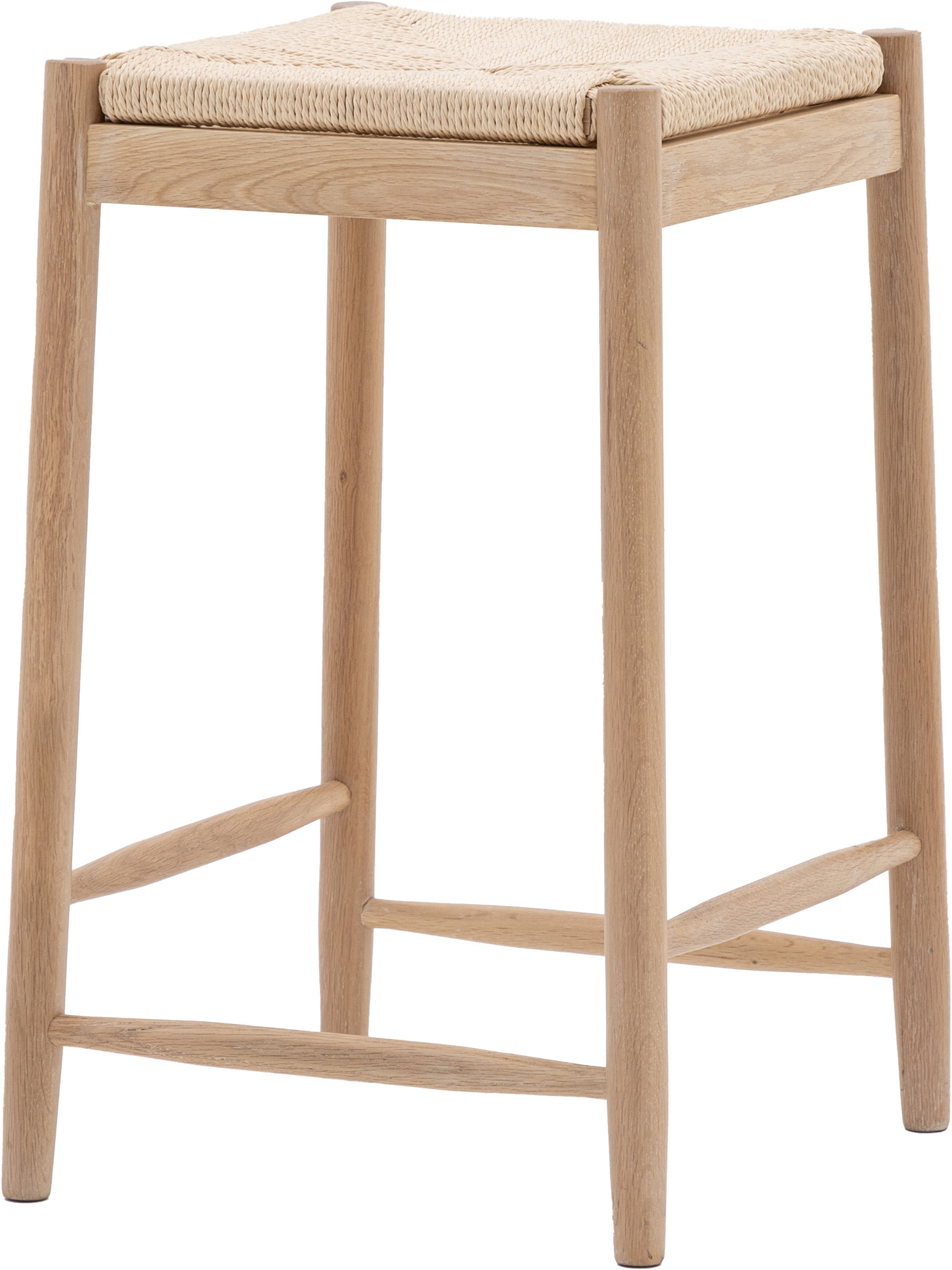 Perfectly combining traditional style and contemporary design, this stool fits perfectly in both modern and farmhouse style interiors. The stool features simple shapes and solid oak frame with a hand woven rope seat.