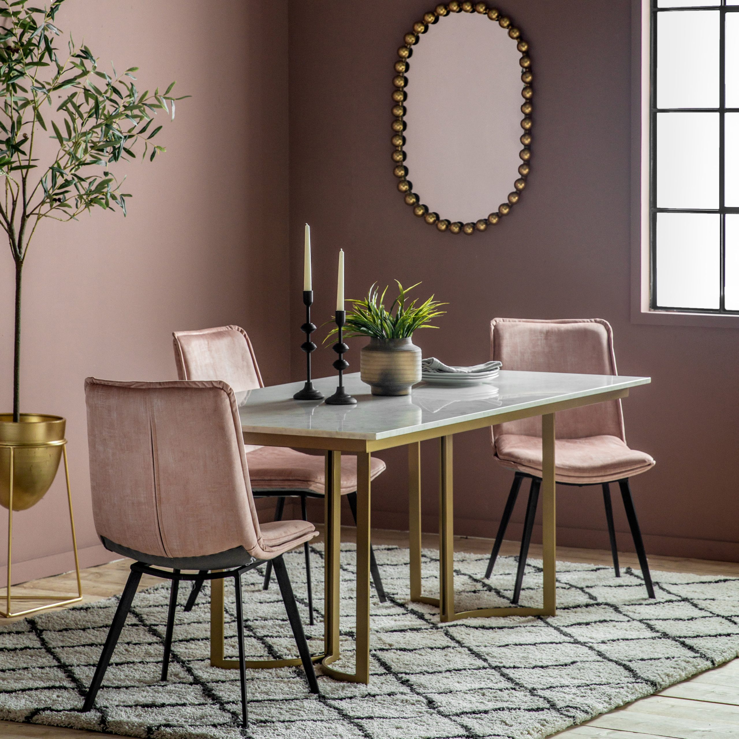 Gallery Direct Everton Dining Table Gold Stunning dining table which features a white marble top paired with a metal base in a brushed brass finish, to create a sophisticated contemporary piece. It is also offered with a matt black base.