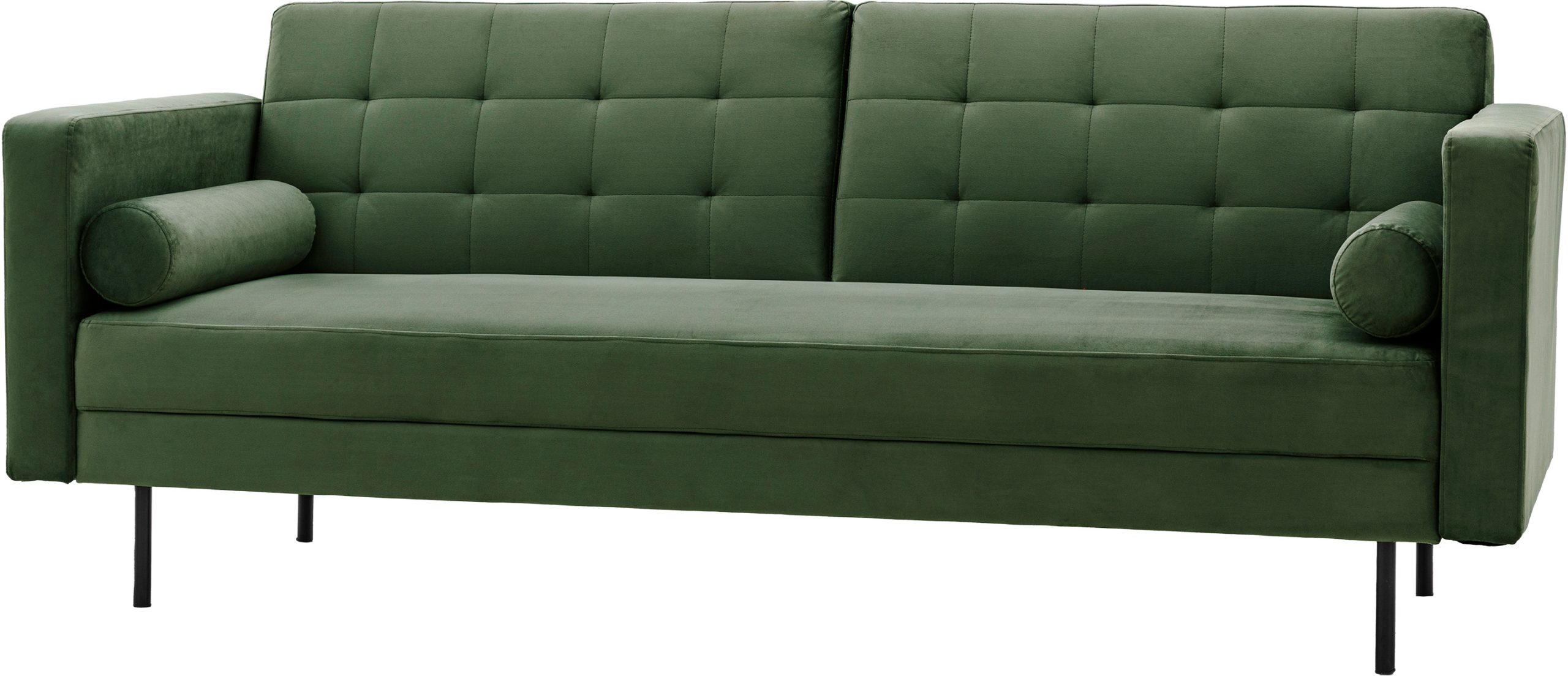 Gallery Direct Eynsford Sofa Bed Bottle Green This lovely sofa bed offers stylish contemporary design paired with the practicality of a sofa bed for when guests stay overnight, with the back quickly and simply folding down to create a bed. Slim straight arms are softened by the round bolster cushions for added comfort.