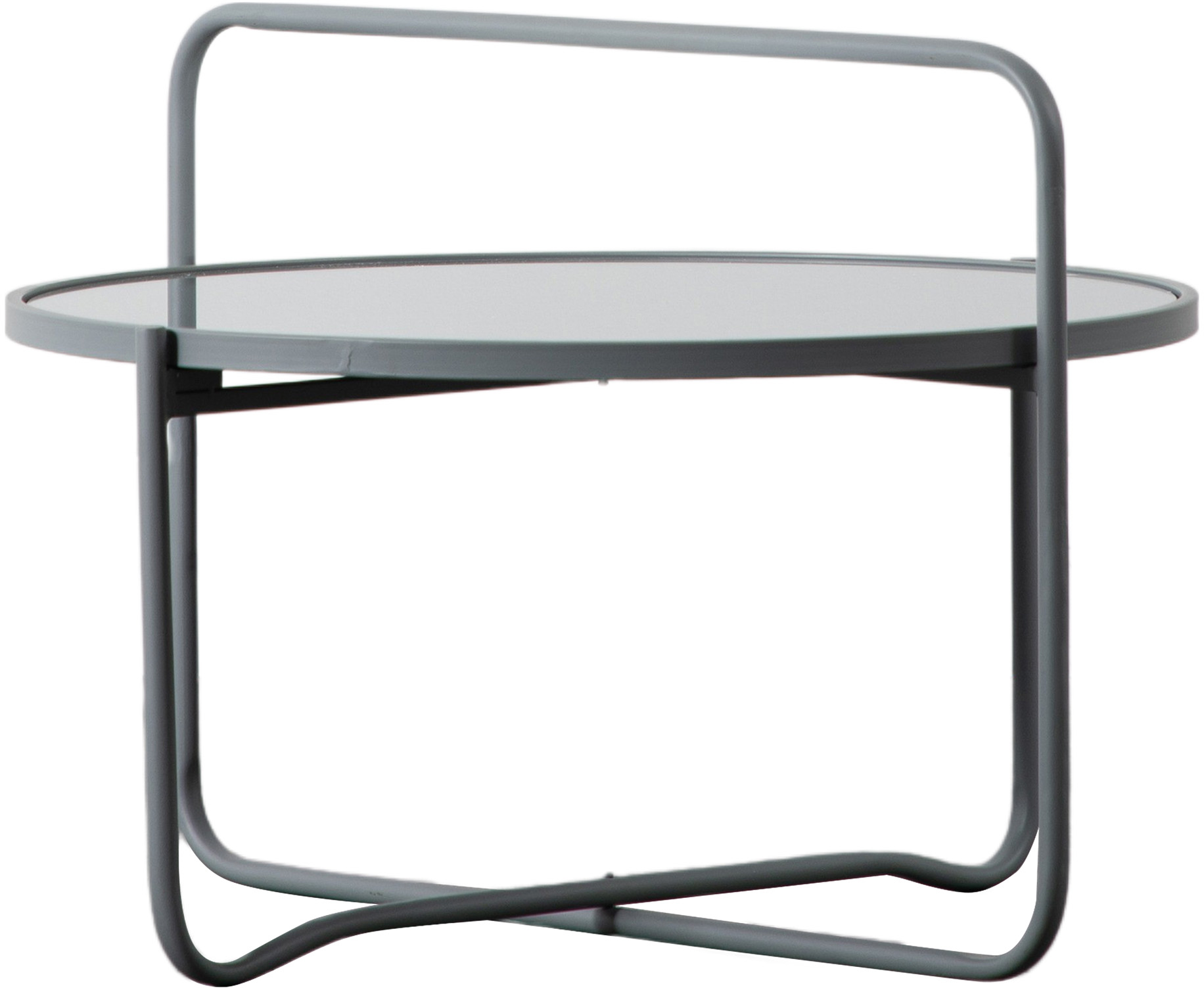 Gallery Direct Fawley Coffee Table Grey Add a contemporary touch to a room with this stylish coffee table. The stunning design features a continuation of one section of the metal base, up and over the table to create a handle effect. There is a matching side table, and both are also available in black and white.