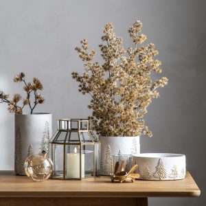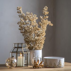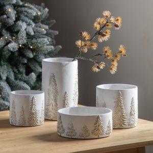 Gallery Direct Forest Planter White & Gold This planter features a stunning festive white with beautifully etched Christmas trees and elegant gold detail, perfect for displaying festive bunches. Other sizes are available and look stunning with displayed together.