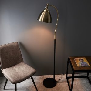 An authentic ‘resto’ style adjustable floor light, finished in antique brass & antique brass plated details. Featuring an adjustable head with inline on/off foot switch and 1.5m black fabric flex, pair this floor light with filament LED lamps for that perfect industrial style. The perfect addition for today’s stylish homes to create that on trend bar, bistro look.