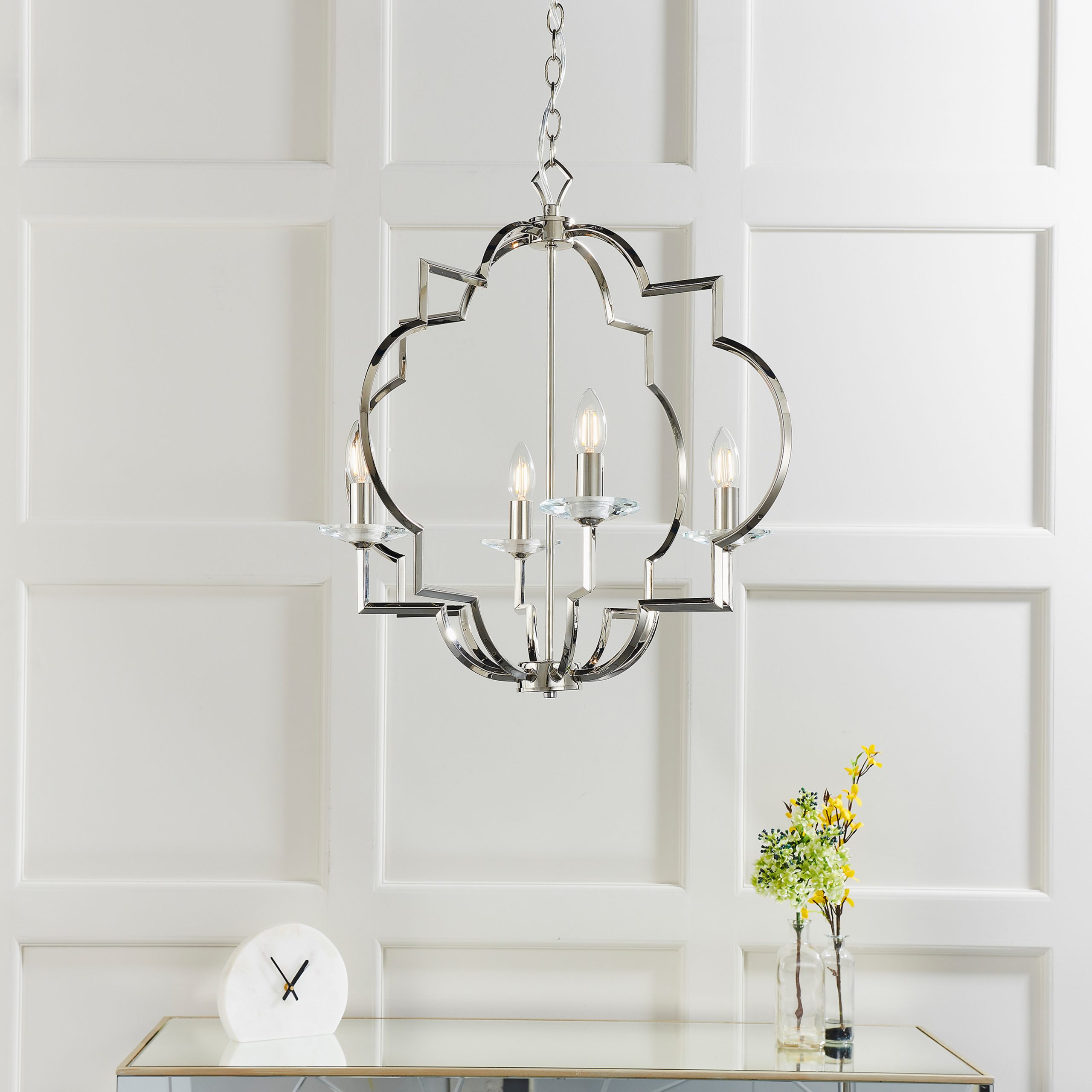 A stunning twist on a classic pendant light. The eye of the beholder will clearly see the understated beauty in the elegant and shapely polished effect framework and crystal glass detailing.
