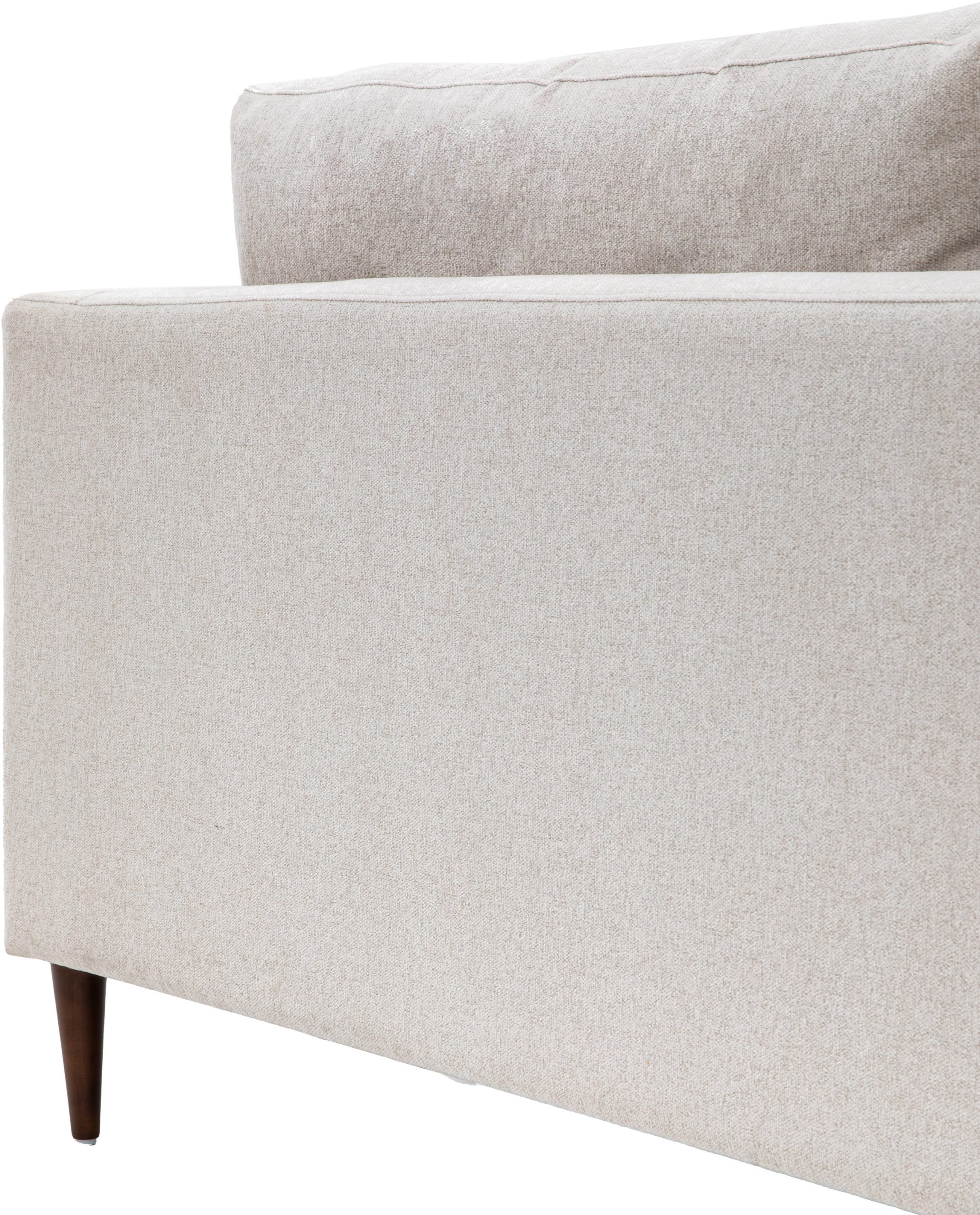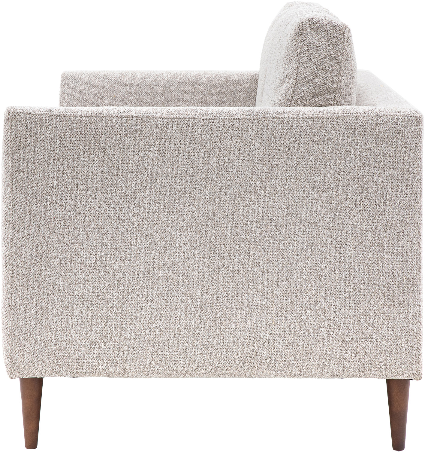 This contemporary 2-seater sofa offers a simple stylish design which would suit a wide range of interiors. Upholstered in a beautiful soft natural fabric with deep seat and back cushions for comfort, the turned wooden legs echo the shape of the gently tapered arms in a lovely design detail. Matching armchair and 3-seater sofa are available to give a coordinated look to a room.