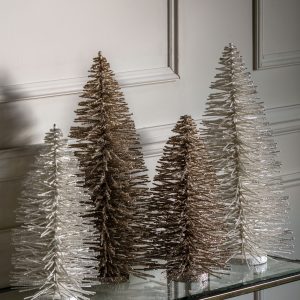 These glittered brush trees will add some sparkle to your home this Christmas. Available in 2 colours and 2 sizes.