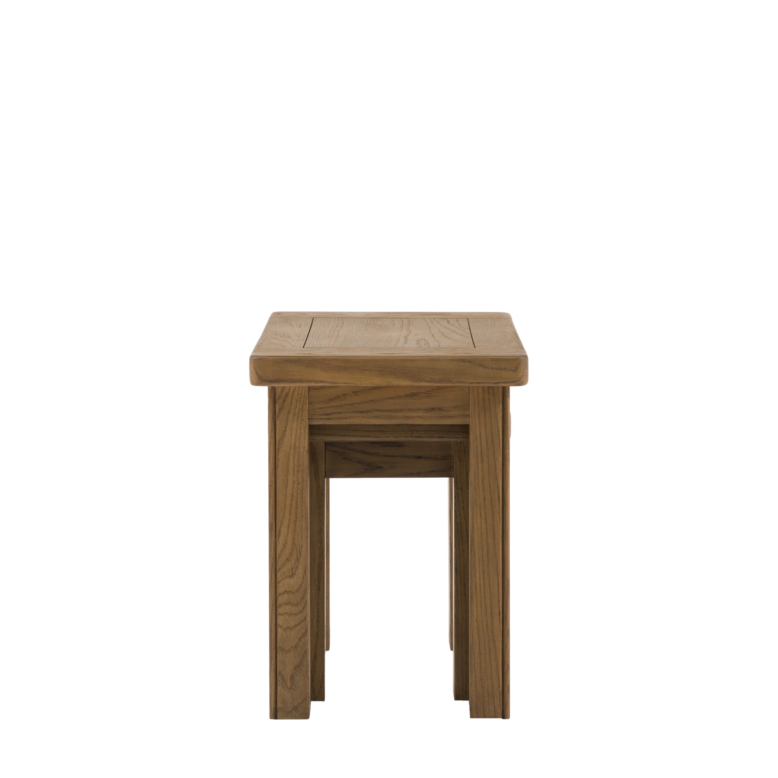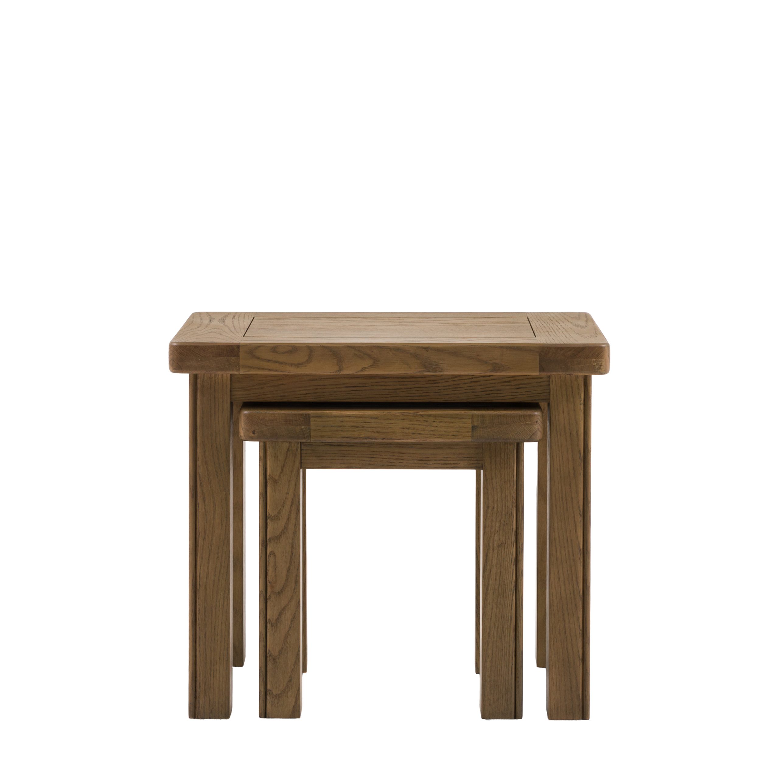 Gallery Direct Hardwick Nest of 2 Tables Discover practical elegance with this set of two nesting tables. These two tables can be used together as a multi-tiered display or separately as convenient side tables, ready to place where needed. The warm, natural wood finish, made with solid oak & veneers, combined with classical designs, adds a touch of rustic elegance to a living space, offering both style and remarkable versatility.
