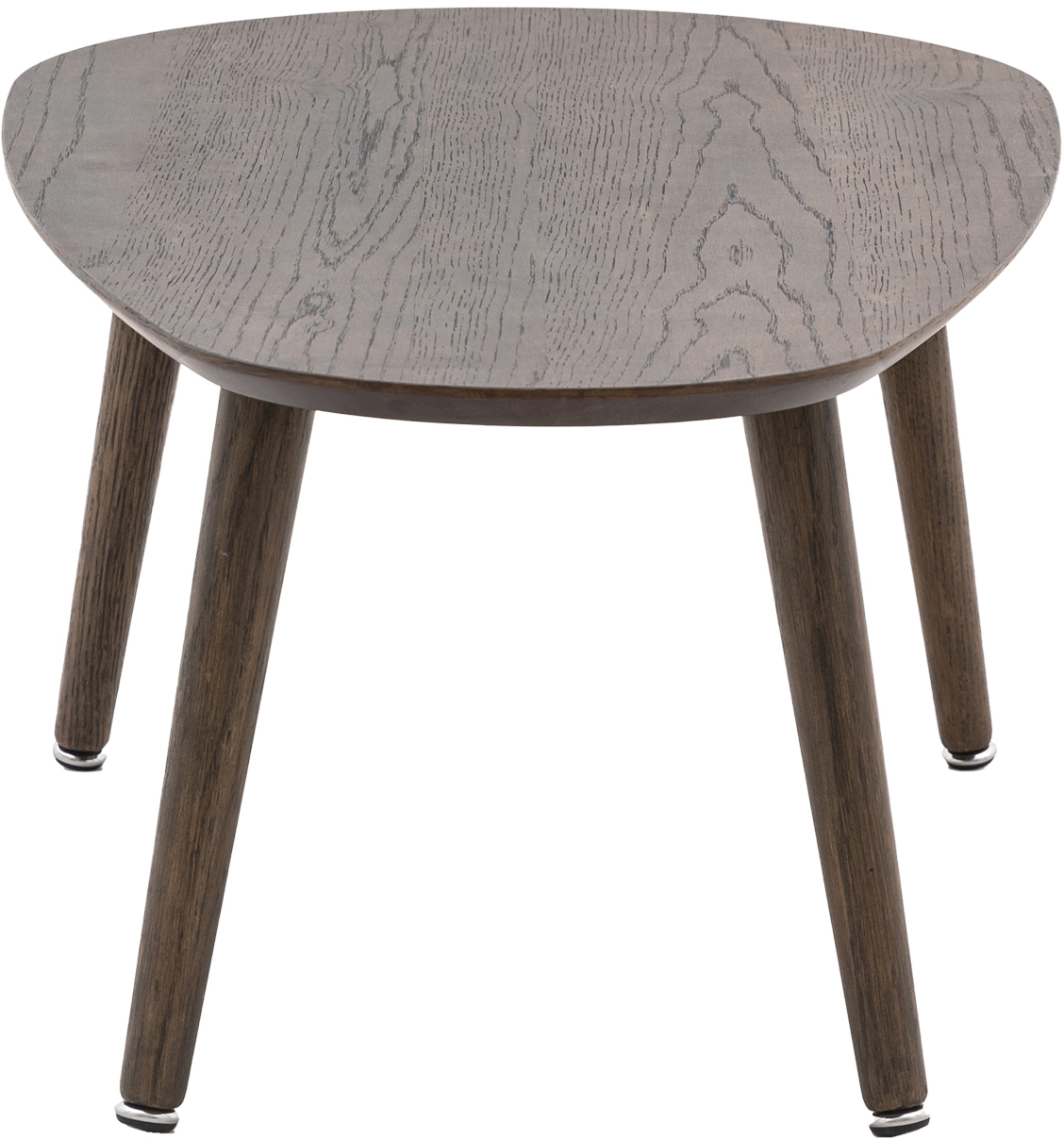 The Gallery Direct Hatfield Smoked Coffee Table is a unique and stylish addition to any living space. Its organic, oval shape and solid oak construction create a warm and inviting atmosphere. The tapered legs add a touch of Scandinavian minimalism, while the Smoked wood finish complements a variety of interior styles. Perfect for relaxing with a book or entertaining guests.