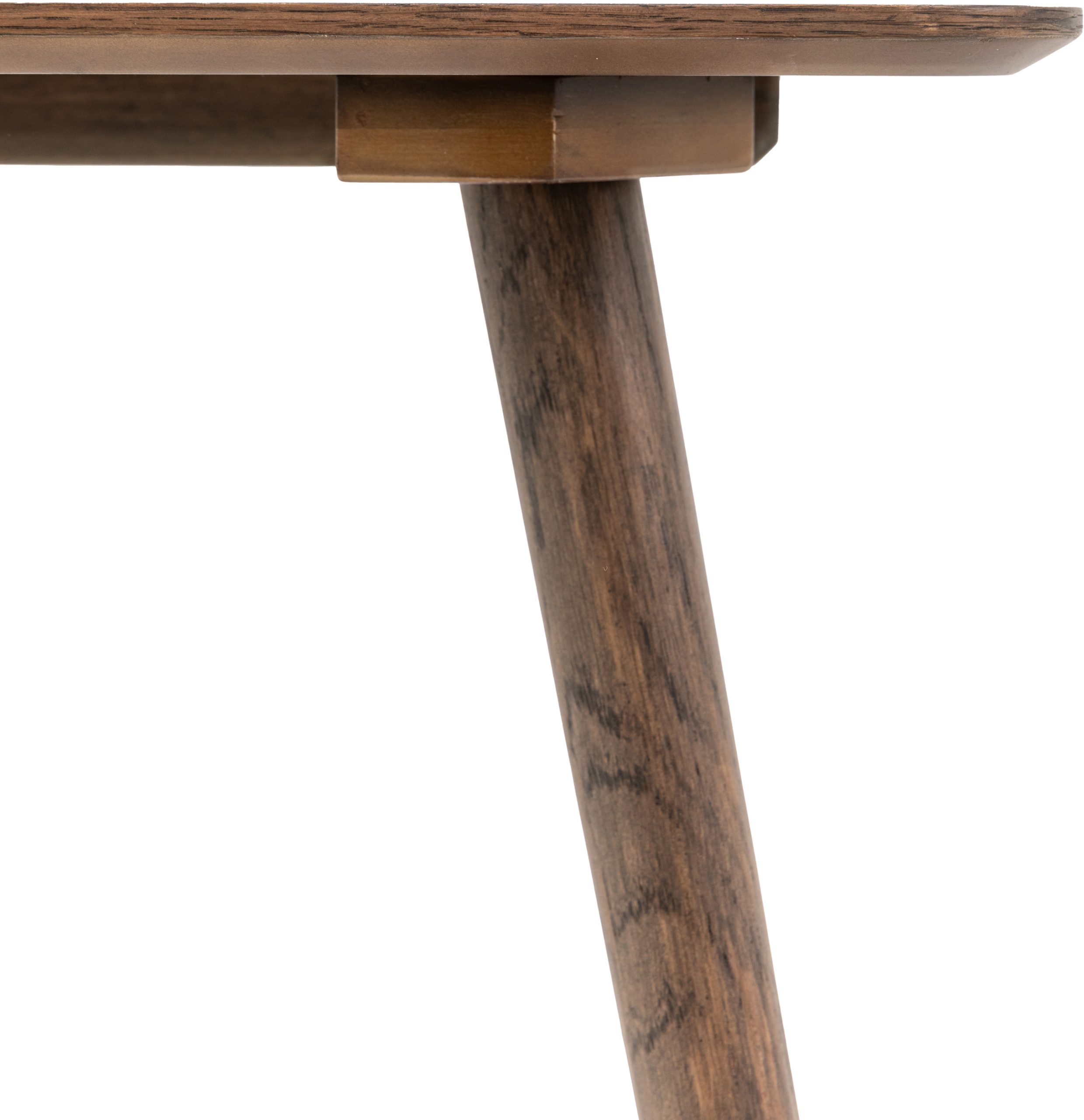Offering retro style with a contemporary touch, this beautiful square dining table is crafted from oak veneers and rubberwood with a smoked oak finish. The table is also available in a natural finish, and matching pieces are available.