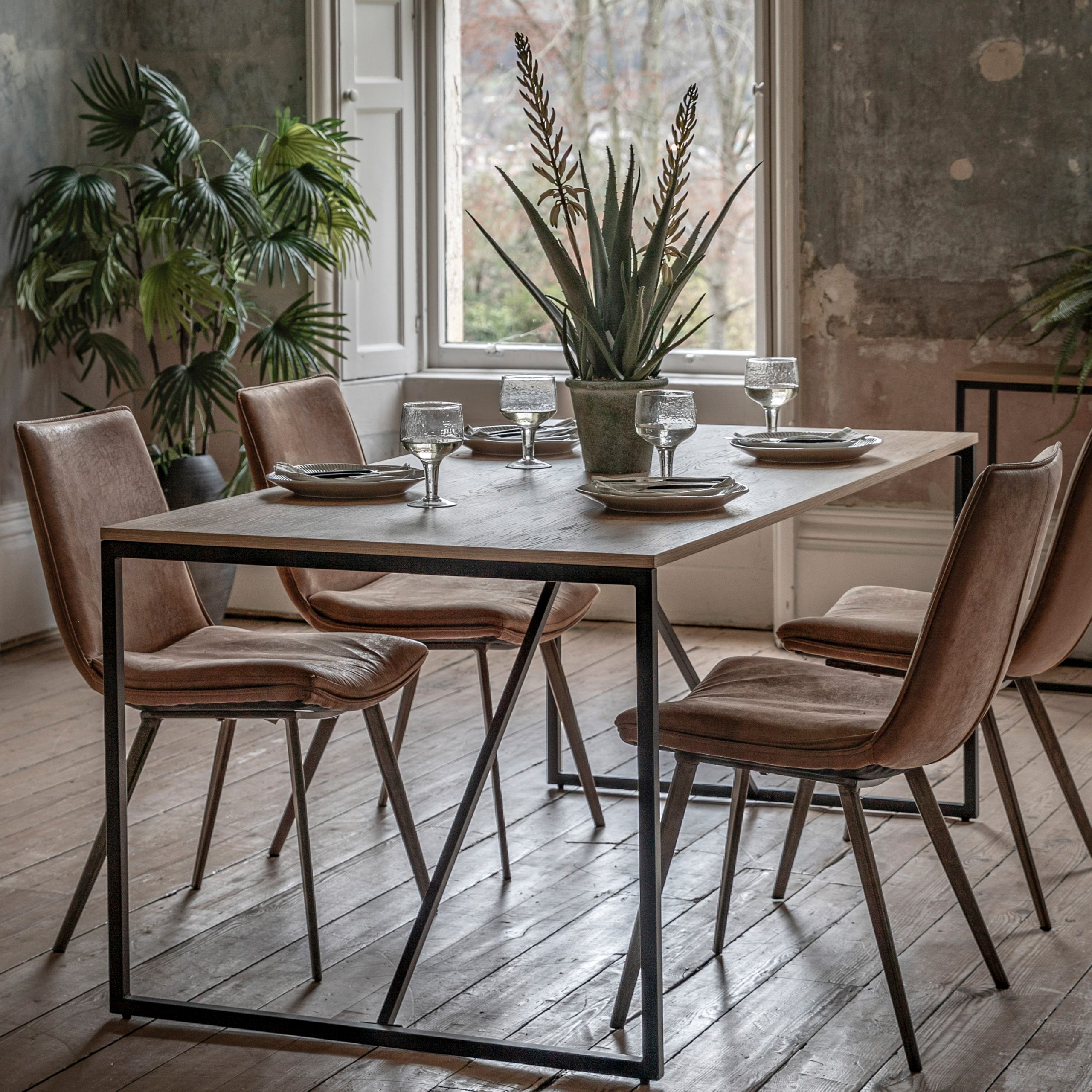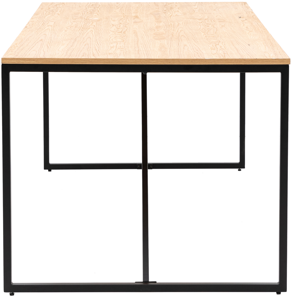 Gallery Direct Henley Dining Table This stunning dining table combines clean sharp lines with a natural oak veneer top and a matt black metal base to offer crisp contemporary style. It is part of a collection which offers a range of tables plus a display unit.The collection is part of our Packed-Flat Design Project, offering easy delivery to any room in any property, whilst reducing the packaging needed. Easy assembly is required, but all the tools needed are supplied.