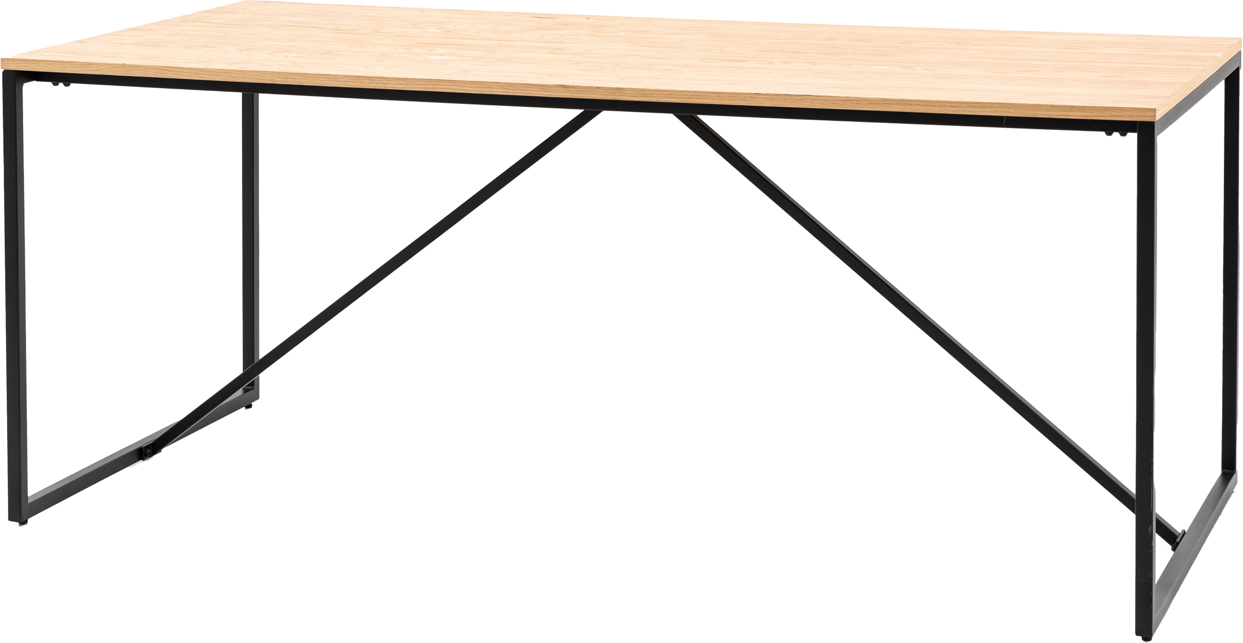 This stunning dining table combines clean sharp lines with a natural oak veneer top and a matt black metal base to offer crisp contemporary style. It is part of a collection which offers a range of tables plus a display unit.