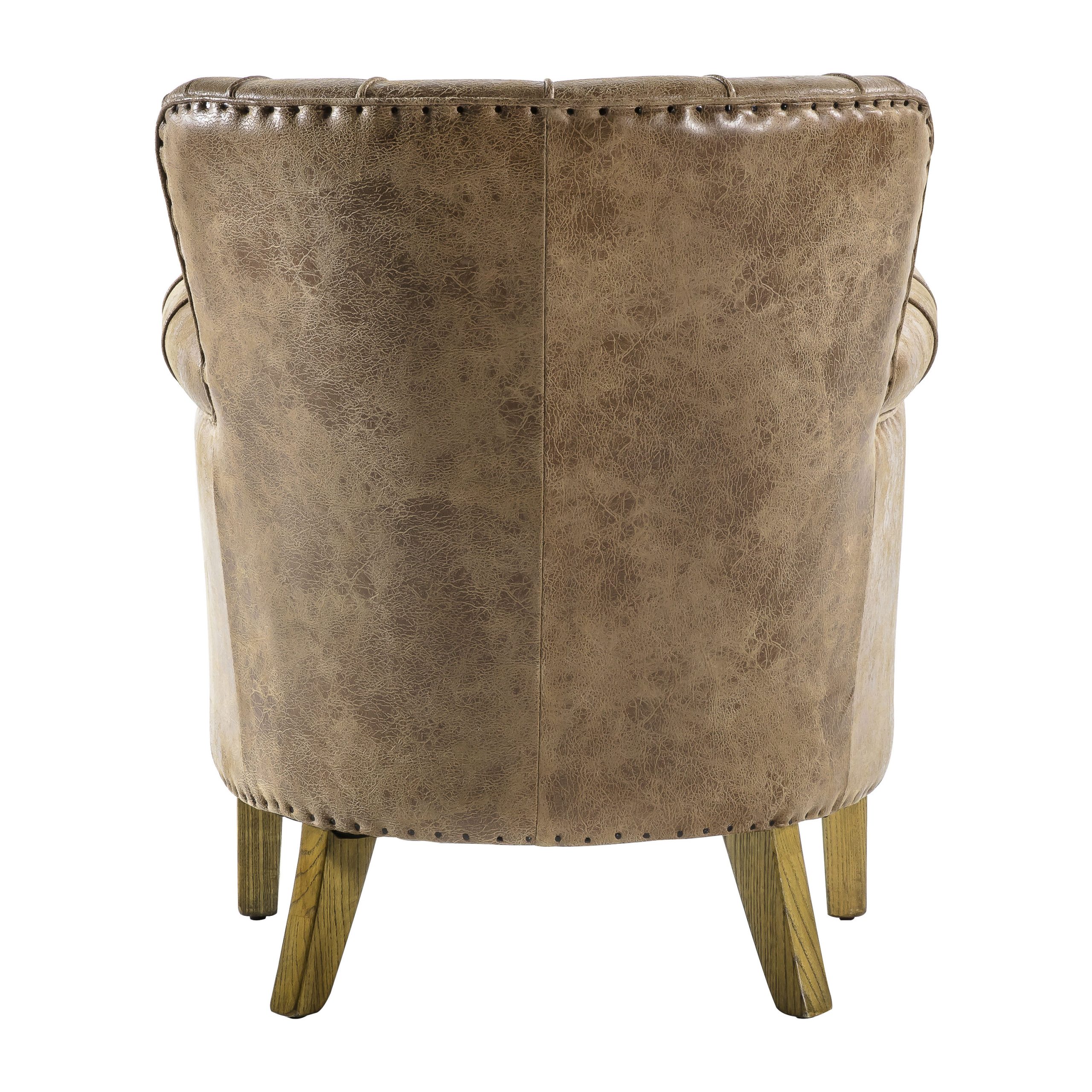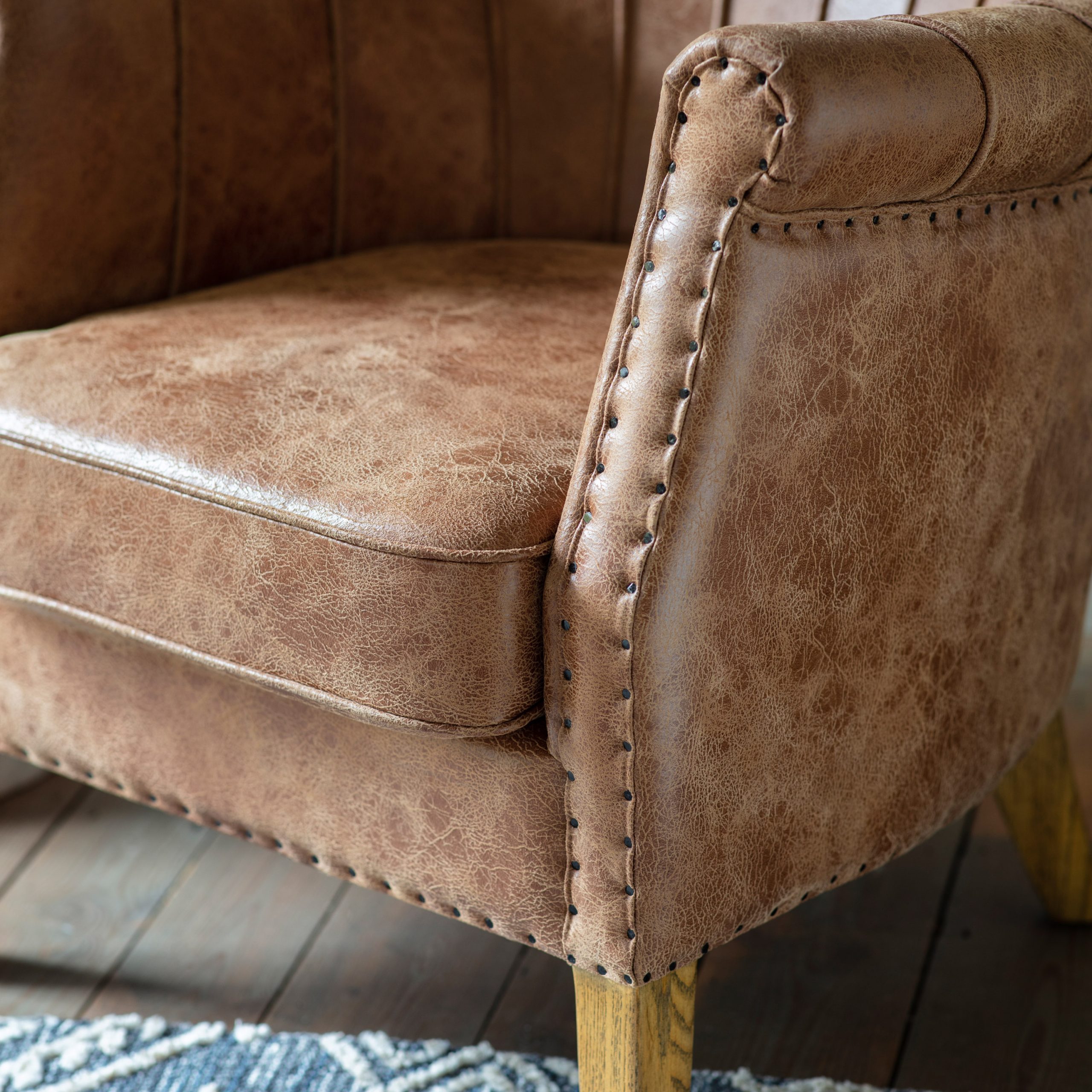 Gallery Direct Hickman Armchair Brown Leather With wonderful detail and craftsmanship creating an unusual take on a classic design this armchair is a wonderful addition to any room. Upholstered in leather, with stitching down the inside back and sides, and nail detailing on the front and external sides, to add interest and design elements.