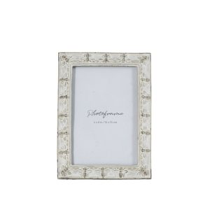 Showcase your best memories in this chic bee patterned photo frame in distressed antique grey tones. Fits a 4×6 photo.”