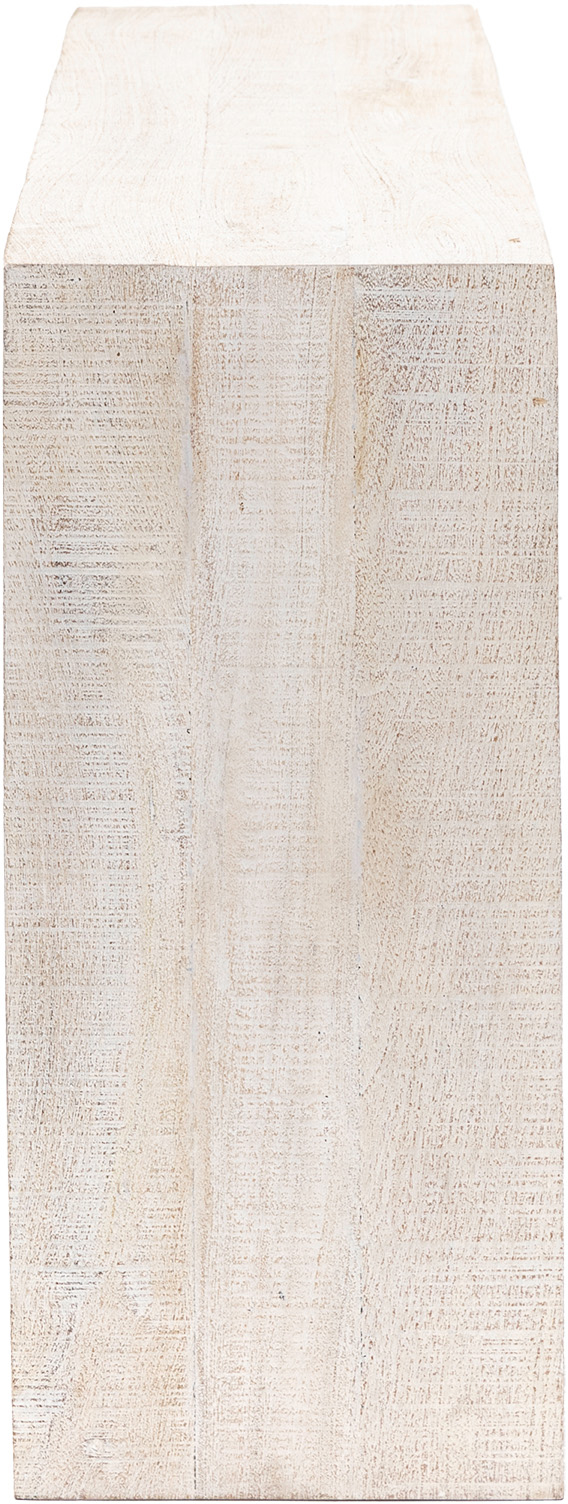 Gallery Direct Iowa Console Whitewash Perfect for use as a console table or slim desk this chunky rustic table will add homely charm to your room. With a simple sturdy shape, this table is made with rough hewn Mango wood in a whitewash finish for a charmingly rustic feel. Also available in a natural finish. Coordinating additional pieces available.
