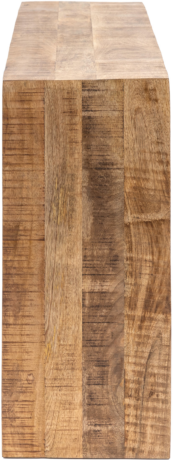 Perfect for use as a console table or slim desk this chunky rustic table will add homely charm to your room. With a simple sturdy shape, this table is made with rough hewn Mango wood in a natural finish for a charmingly rustic feel. Also available in a whitewash finish. Coordinating additional pieces available.