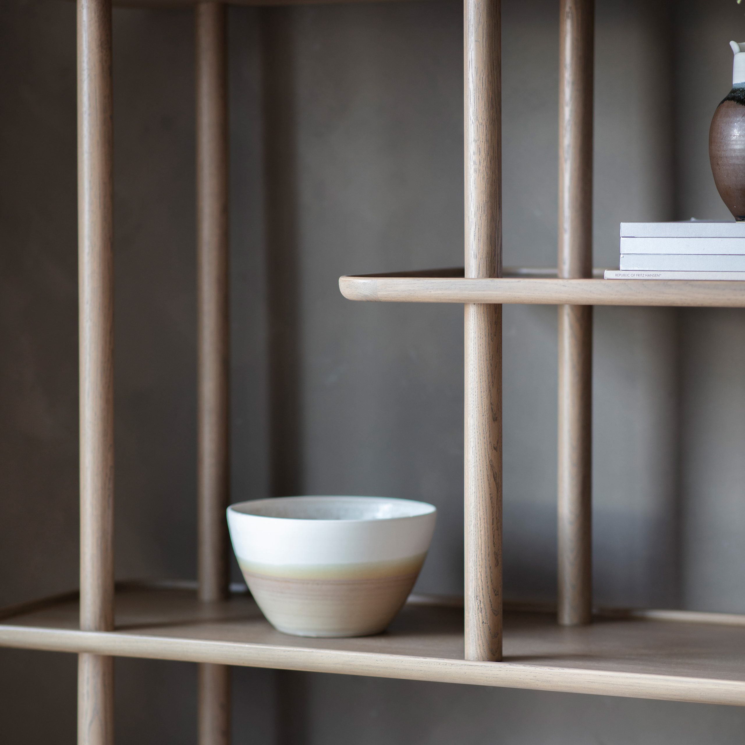 Kingham Open Display Grey 1100x380x1600mm The Kingham collection showcases oak interior pieces with smooth lines, rounded corners and a natural finish. Clean, simple and effortlessly attractive. The designs pair their honest character with a contemporary edge, making them highly compatible with an array of home styles. Discover a perfect piece for your home and choose a Kingham today.